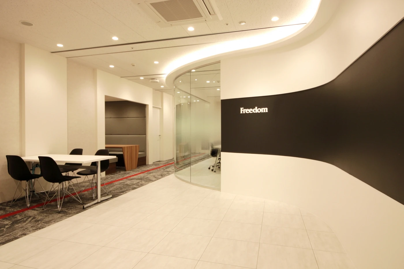 コミュニケーションが活発に行われるような、社員の皆様へ向けたオフィスを創りたいという、代表様の思いが詰まった今回のオフィス。複数フロアにまたがっていたオフィスを移転し、1フロアに集約されるタイミングでお手伝いさせていただきました。今までなかったエントランスを新たに設け、訪れる皆様をフリーダム様のアットホームな空気感でお出迎えします。社内の打合せスペースやリフレッシュスペースも新たに設置することで、社員の皆様が気分に合わせて利用しやすい空間を作り上げることができました。