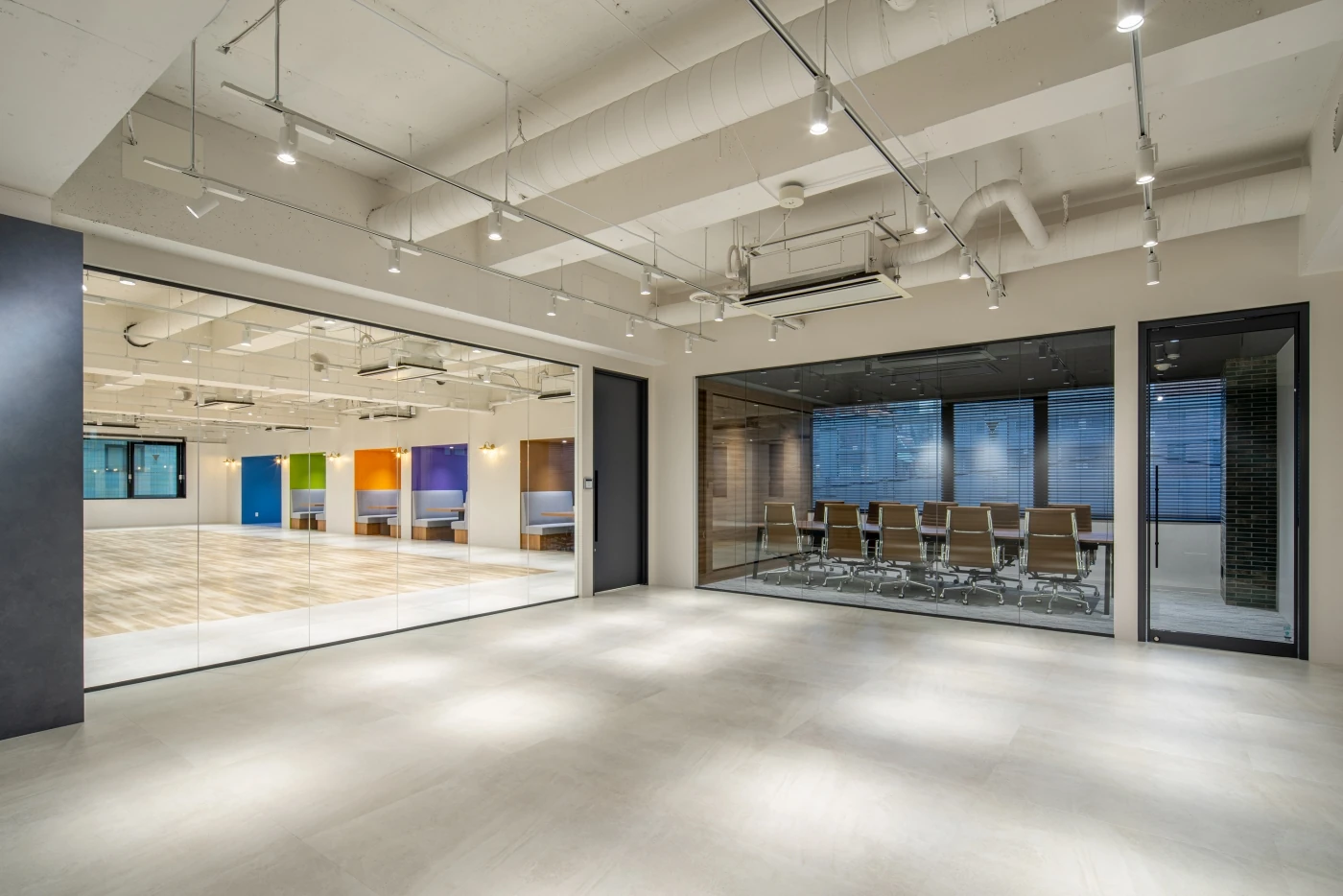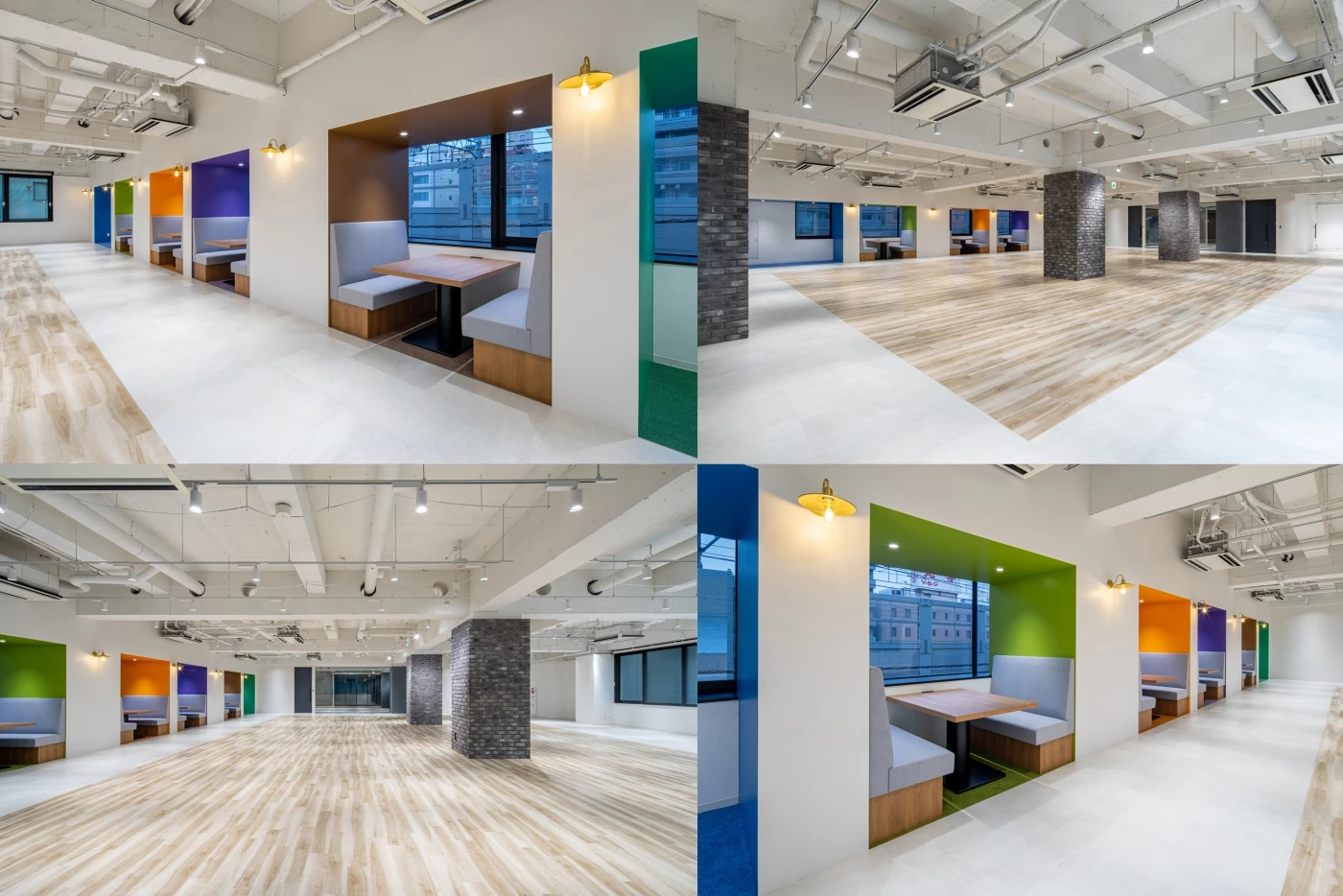 秋葉原プロパティ―様のセットアップオフィスをお手伝いさせていただきました。空間全体から洗練されたデザイン性を感じ取れるよう、柱部分のマテリアルなどに関しては質感を求めブリックタイルで仕上げました。個別ブースでは色が映える6色の特殊塗装を施し、空間全体のアクセントとして際立たせています。ご入居される企業様が自由にレイアウトを組めるように、余白を残したレイアウト設計を意識しました。