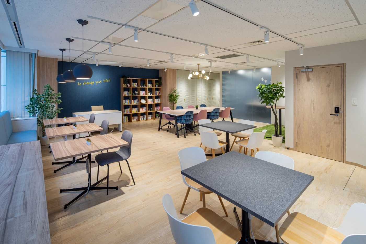 シェアオフィスから、Pass Point様が初めて自社のオフィスを構えるタイミングでお手伝いしました。オフィスに出社しなくても良いというフリーな働き方を推奨されている中、「オフィスに集まりたい、戻ってきたい」と思えるような空間を提案しました。コンセプトは”MAKE UP”とし、個性あふれるフレッシュな社員の皆様が、オフィスを構えることで、よりコミュニケーションが活発になり、さらに成長していけるようにという想いを込めました。代表席後ろの壁面には、仕事だけでなく、人生において前向きに成長していけるように「Are you ready to change your life?」という言葉を設えました。