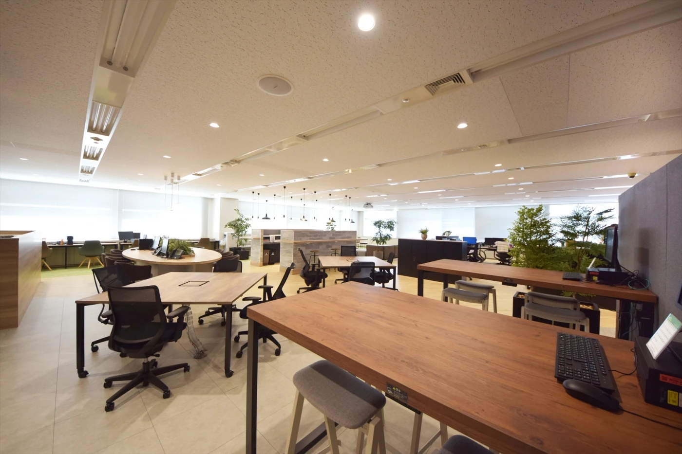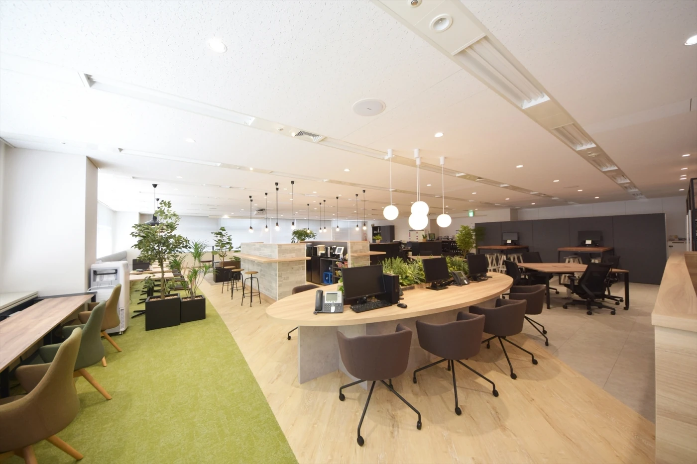 ABWを導入し、様々なシチュエーションで働くエリアを想定しオフィスをつくりました。入口側より、高集中・二人作業・アイデア出しのエリアが広がっていくようなレイアウトとなっています。ハード面だけではなく、フリーアドレスを機に企業文化づくりもお客様と共に行い、社員にとって開放感ある風通しがよい環境になりました。照明と木目を大切にして温かみを出し、家具も全体のバランスを考えて落ち着いたものを選定しました。様々なシチュエーションで生まれる偶発的なコミュニケーションが期待できる空間となりました。
