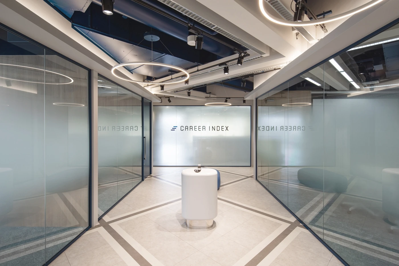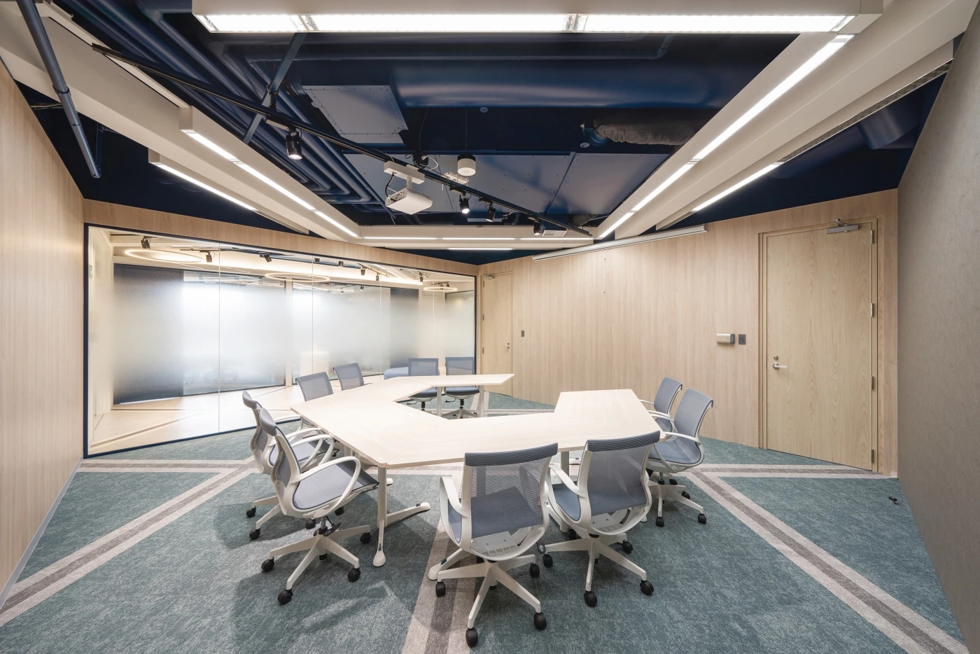 事業拡大に伴う拡大移転。働く環境の快適性向上や拡張性を意識したオフィス作りをリクエストしていただきました。オフィスビルの立地、ビル自体がスケルトン天井であること等、デザインをする前から素晴らしい環境が整っていたので、その環境を活かしたデザインをすることも一つのポイントでした。働き方が多様化する中、単なる拡張性ではなく社員の皆様がリフレッシュや仕事を複合的にできるフリースペースを区画の中で一番良いエリアに設け、快適性を高めました。また、オフィスコンセプトは『LINK UP』とし、オフィス環境において様々なものを結びつける意味合いを設けました。働き方の多様性(将来へのつながり)、社員同士のコミュニケーション、個々のナレッジ共有など、企業の成長を後押しする想いが込められています。