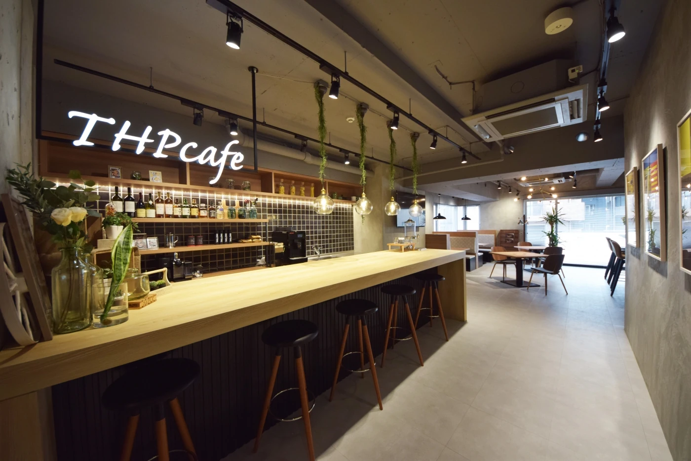 オフィスは業務を遂行する場所ではなく、自分の夢を叶える場として、社員が働きやすいと思える環境を考えデザインしました。各社員が想い描く夢に取り組める空間であるために、「CREATIVE×REALIZE 創造力が喚起され、自らの夢を叶えるオフィス」というコンセプトで空間を構成しました。4Fの「THPcafe」カウンターでは、社員だけではなく、訪れるすべての人が自由に使えるカフェスペースになっています。3Fはフリーアドレスを導入したワークスペースになっており、業務効率化と集中力が高まる空間になるよう意識しました。