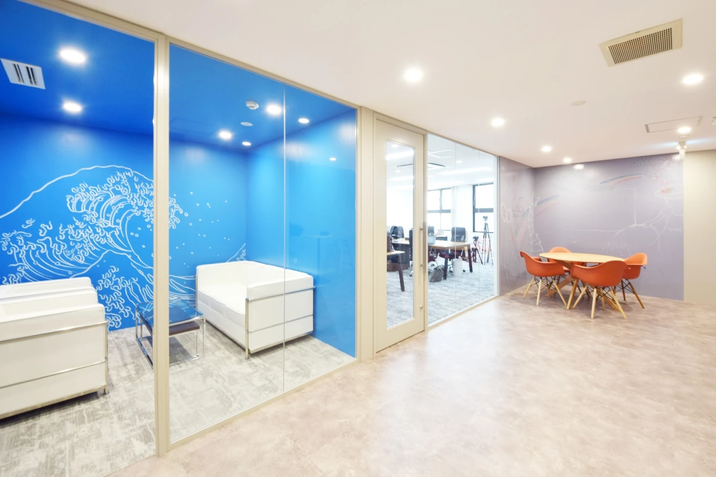 色を多用し、企業理念「ワクワク、生きる」を体現したオフィス