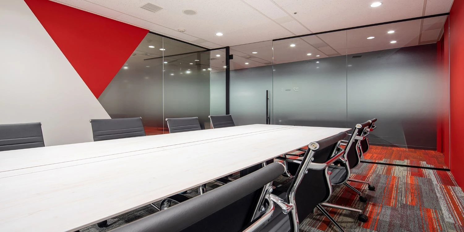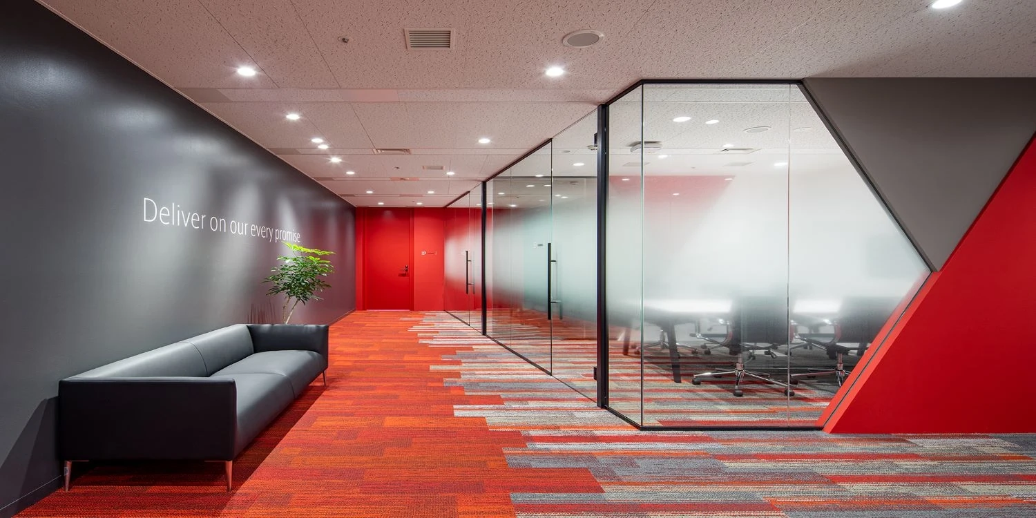 企業イメージを全面的に打ち出した印象的なオフィス