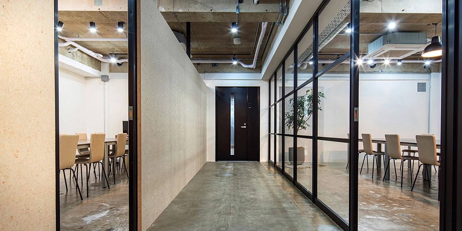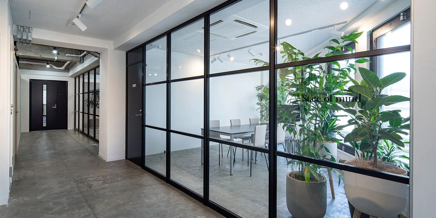 事業が拡大し、人が増える中で課題になっていた「コミュニケーションの取りづらさ」。ご依頼をいただいた際はマンション5部屋をオフィスとして使用しており、各部屋の行き来があることや手狭感が課題に上がっていました。今回、初めてのオフィスビルへの入居かつ2フロアに集約移転するということで、オフィスの一体感はもちろん、空間の魅せ方にもこだわりました。スケルトン天井や床など既存の空間を最大限に活用しながらも、縫製ルームをワークスペースの中心に設置、撮影スペースを設けるなどステイト・オブ・マインド様らしさを発信できるオフィスに仕上がりました。