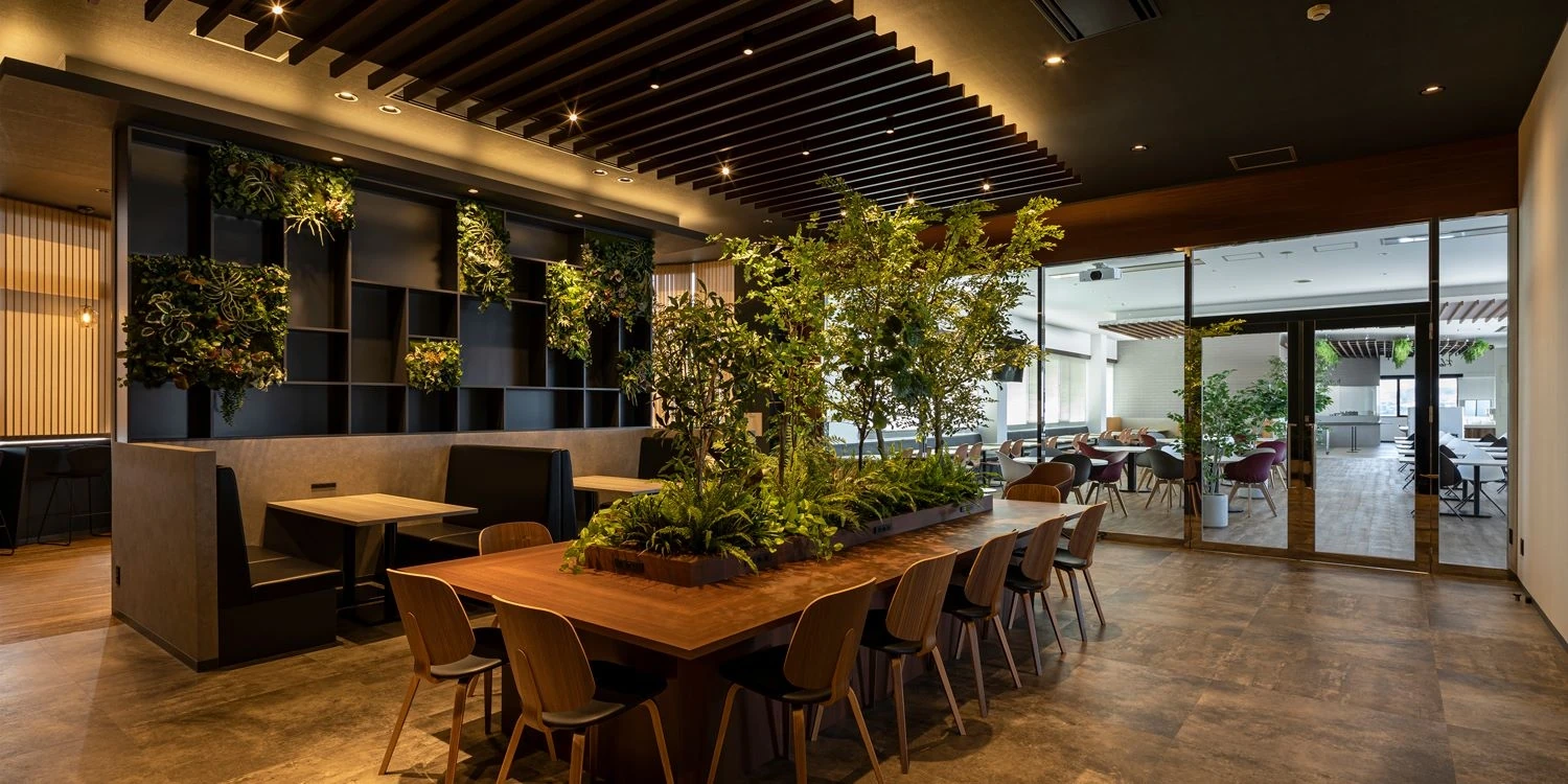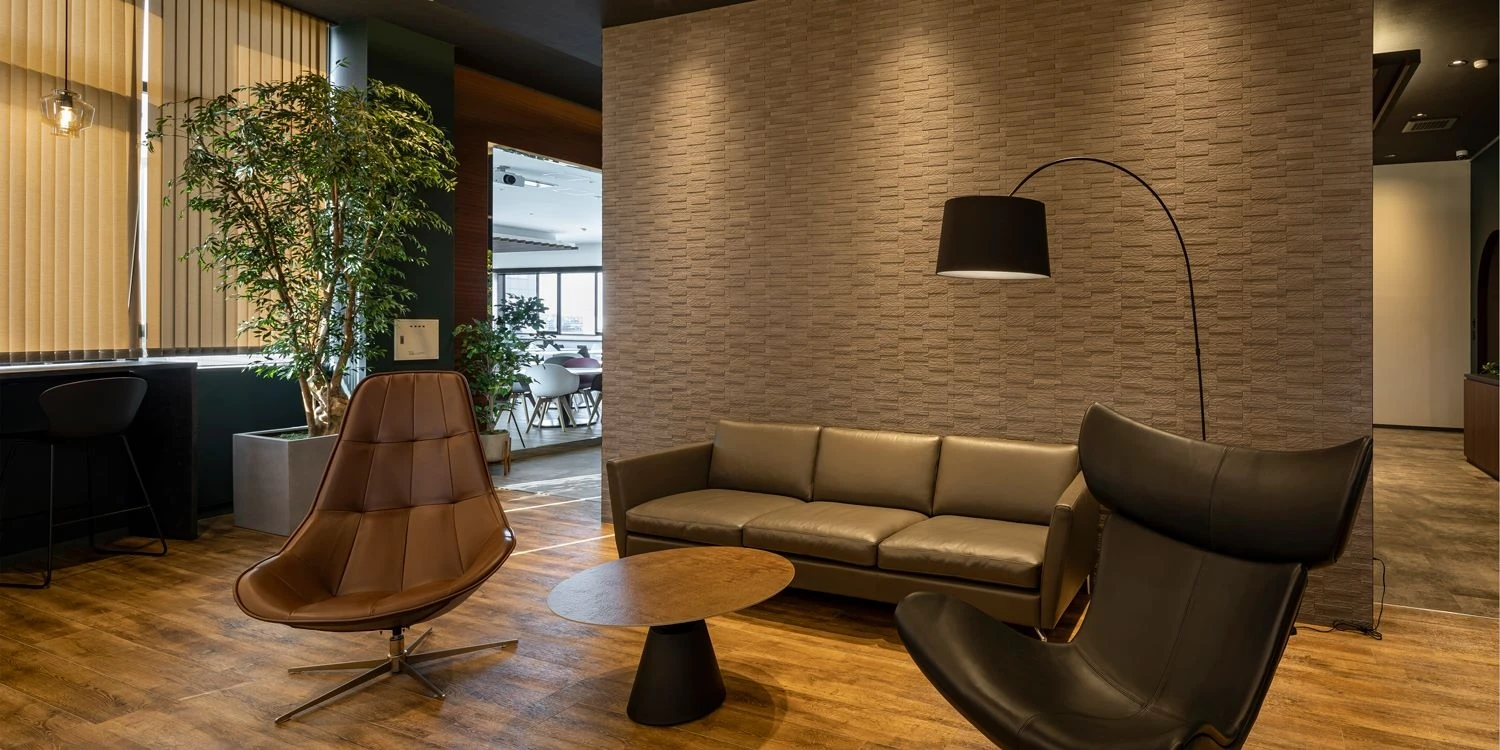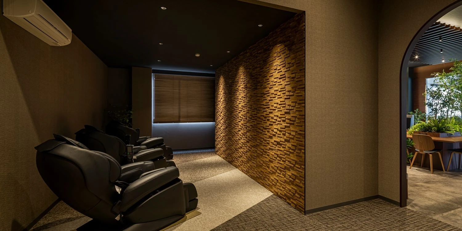 愛知県半田市の自社ビル4階に新しく食堂スペースをつくるプロジェクトです。健康経営+社員様の新しいコミュニケーションの場としてわざわざ足を運んでしまう快適な空間を目指しました。『T-lamis』と名付けられたこの空間は「Tira」=引っぱって、「mi」=私を、「su」=上へ、という単語から来たもので、「私を元気づけて」という意味が込められています。訪れる社員の皆様がおいしいご飯を食べて元気になり、午後からも効率よく働いて欲しいという想いを込めました。おいしいご飯が食べられるエリア、食後にゆっくりとコーヒーを飲めるエリア、ソファでゆっくりと雑談ができるエリア、マッサージチェアで体力を回復するエリア。社員の皆様の満足度をさらに高めたいという想いが伝わる場所になりました。