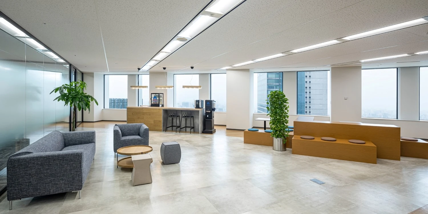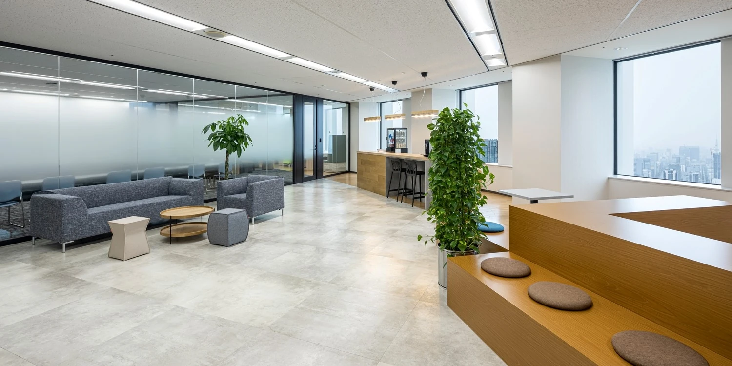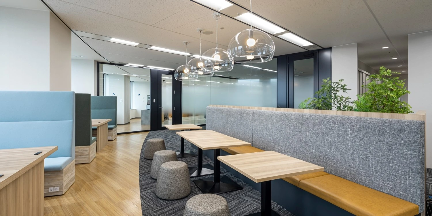 名古屋のランドマークタワーであるJRセントラルタワーズでのフロア増床を含むリニューアルのプロジェクト。プロジェクトのテーマは、「ABW」「クリエイティビティ」「コミュケーション」そして「リブランディング」。増床したエリアはこれまでのオフィスにはなかったさまざまなスタイルのはたらくスペースで構成しました。エントランスは、建材の堅いイメージをなくし、光と植栽が印象的なデザインにリブランディング。お客様をお招きするラウンジエリアには、ソファミーティング、バーカウンター、スタジアムミーティングを設け、第一印象でクリエイティブを感じていただける空間に設えました。ワークスペース内は39Fという高層階の眺望をいかして窓面にさまざまなミーティングエリアや集中エリアを配置。ゲストエリア、ワークエリア共に創造性あふれるオフィスとなりました。