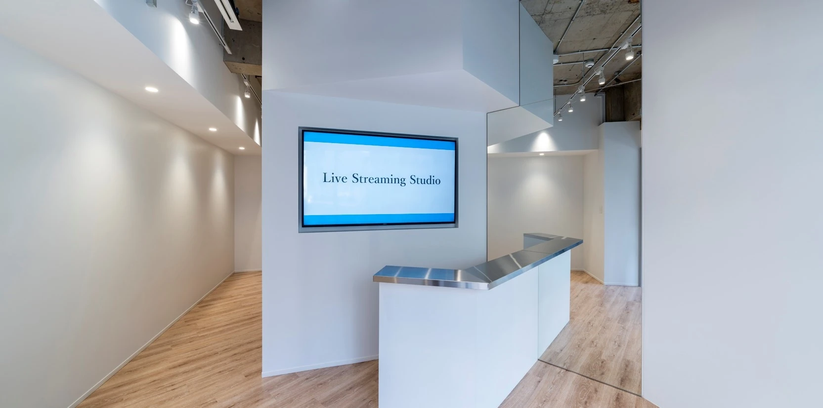 白い空間が出迎える配信・撮影スタジオ
