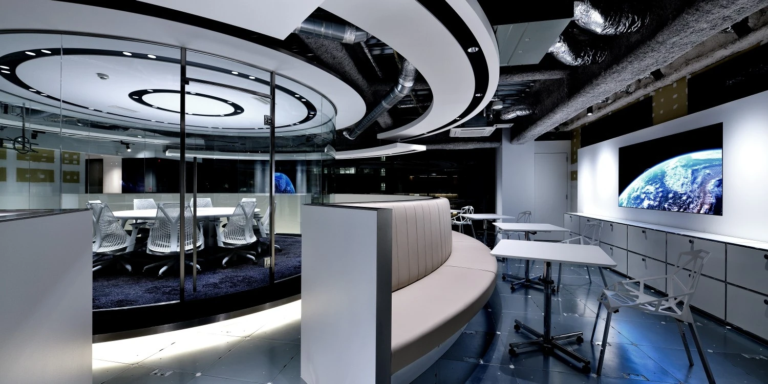 「5年間を逆算した事業戦略」という言葉から『未完成』というキーワードを出し、企業が持つ元々のイメージからインスピレーションを受けて、ビルに元々あるスケルトン状態の内装をあえて最大限有効活用することを選択。『The Place』だからこそ実現できる、特徴を生かした空間構成としました。オフィス中央のミーティングルームは、「Planet(惑星)」を意味するEPR様のシンボルマークを想起するビジュアルデザインでインパクトを訴求しています。「ワークスペースの価値」を追究し、『The Place』で新たな経験“Experience”を提供する『Planet Office』が完成しました。
