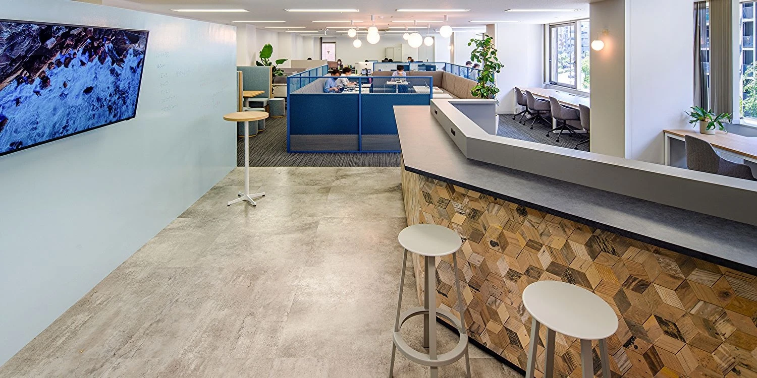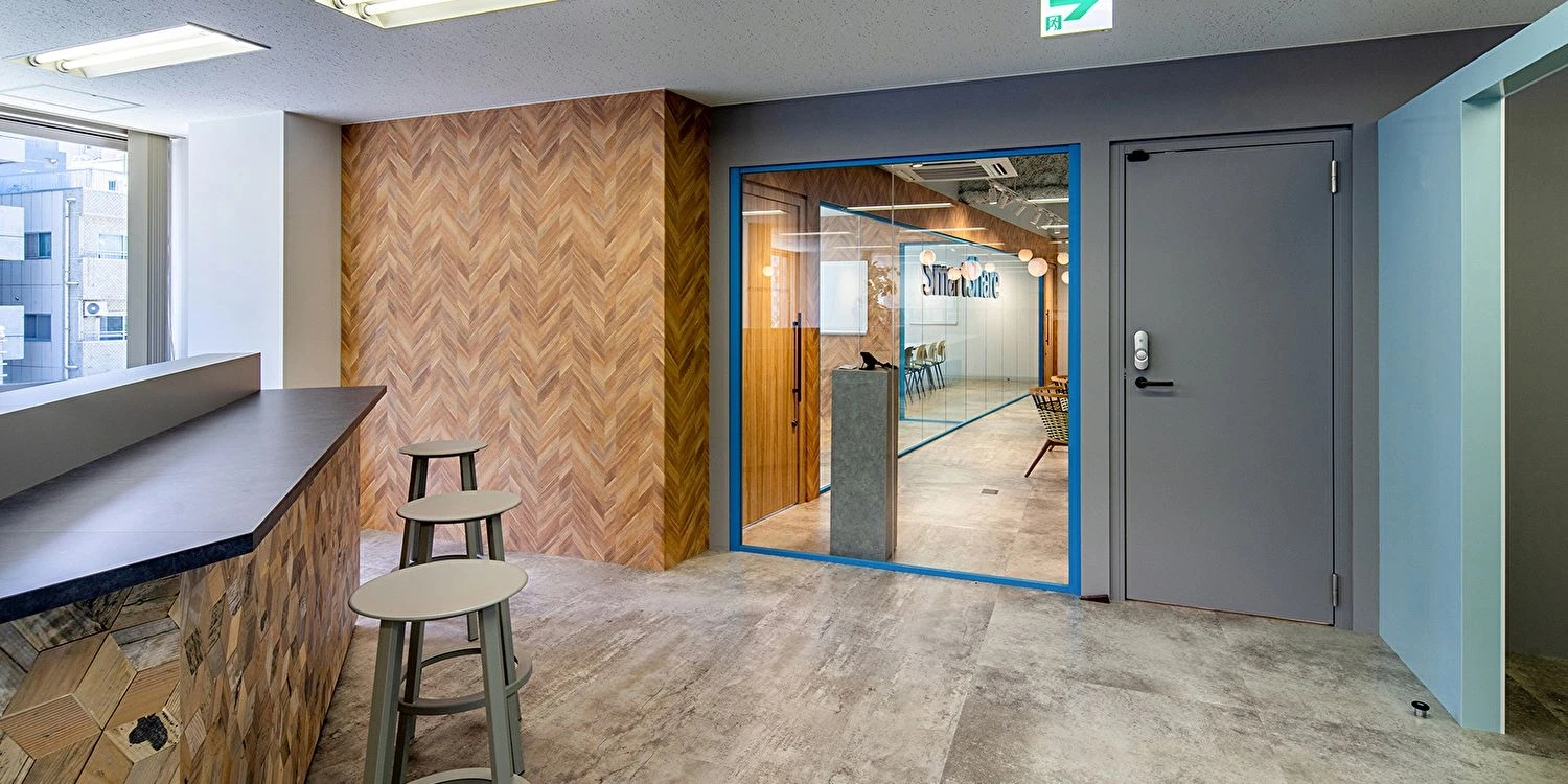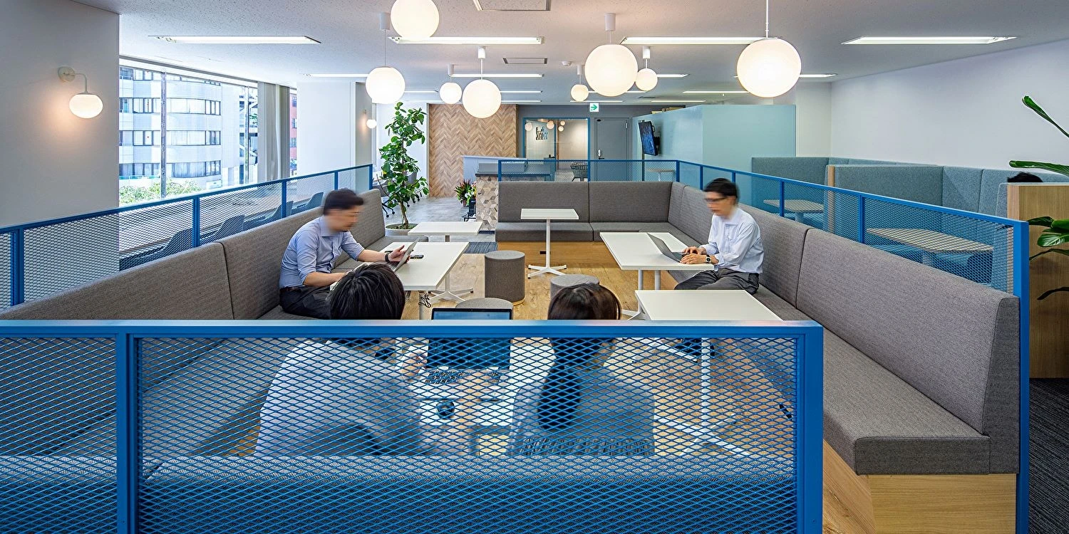 ご移転に伴い、固定席からフリーアドレスへと働き方の変化を実現しました。様々な働くエリアの中でも、オフィスの中央に一体感を生むことができるL字のソファ席を設けたことにより自分たちの考えを共有する場として、移転前の課題であったコミュニケーション不足の解消を促しております。また、コーポレートカラーのブルーを散りばめたり、壁にアートペイントをすることで、視覚からスマートシェア様らしさを感じることができるオフィスとなりました。