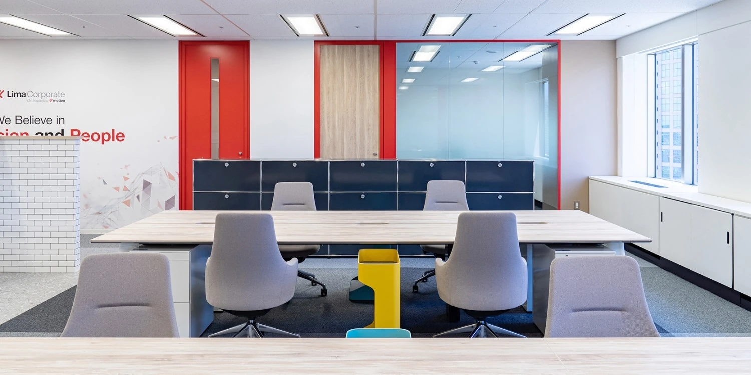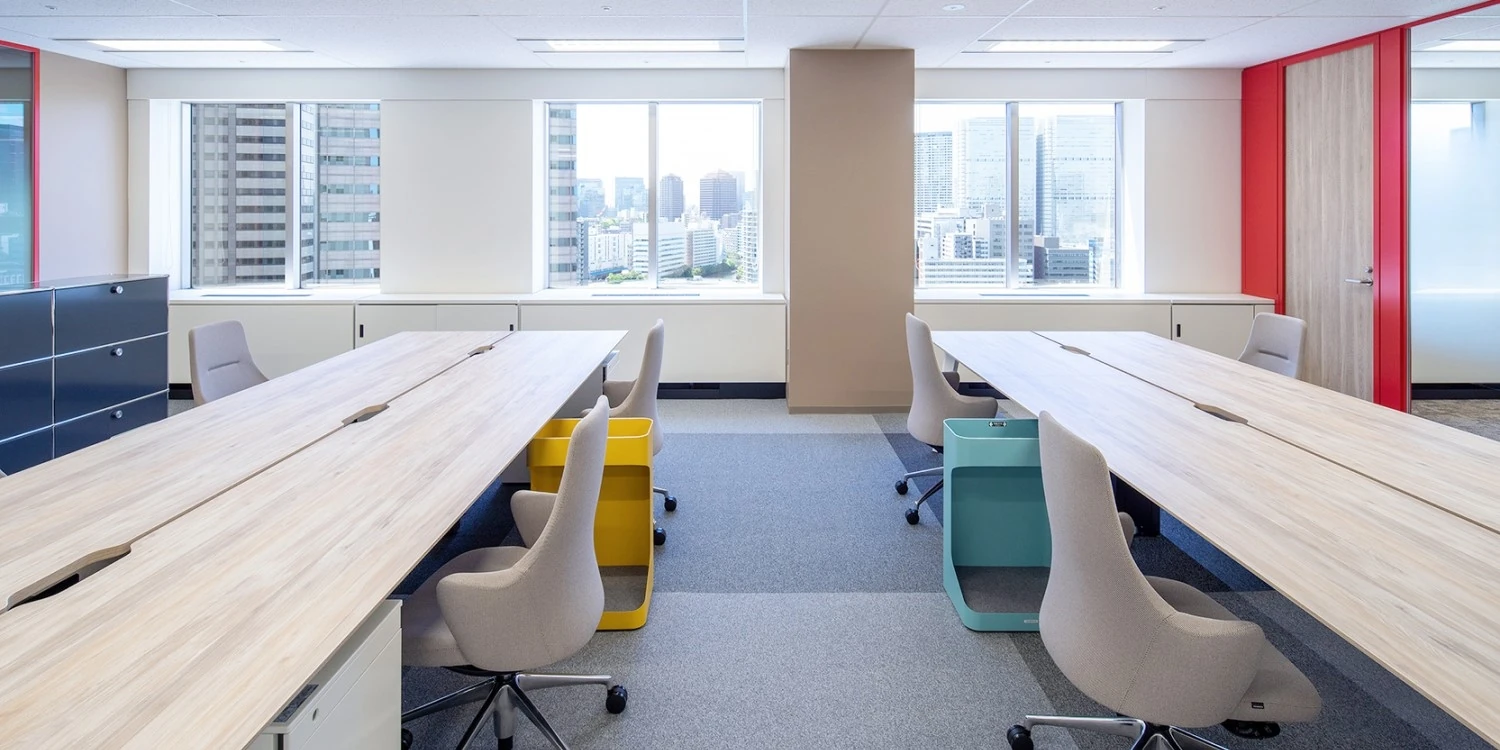 磁石がもたらす自然の力のように、「自然と人が出社したくなる場」「必然的に人が集まる仕掛け」を考え、「メンバー同士のコミュニケーションを活性化する空間」、「互いに影響を与え、さらにエネルギーが上昇する空間」をキーワードに今回のプロジェクトを進行しました。エントランスにはコーポレートカラーを使用し統一感のあるデザインに。ミーティングルームはガラス張りにすることで開放感を感じられます。光が差し込む窓面を考慮し、執務スペースに回遊する動線を確保しました。全体を通して、コーポレートカラーを基調とした日本リマ様らしい情熱を感じられるとともに清潔感のあるデザイナーズオフィスとなりました。