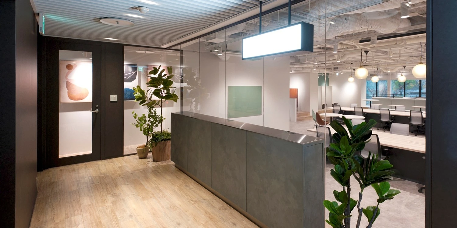 逆梁を活かした高低差で開放感を演出。入居企業の企業価値を育むセットアップオフィス