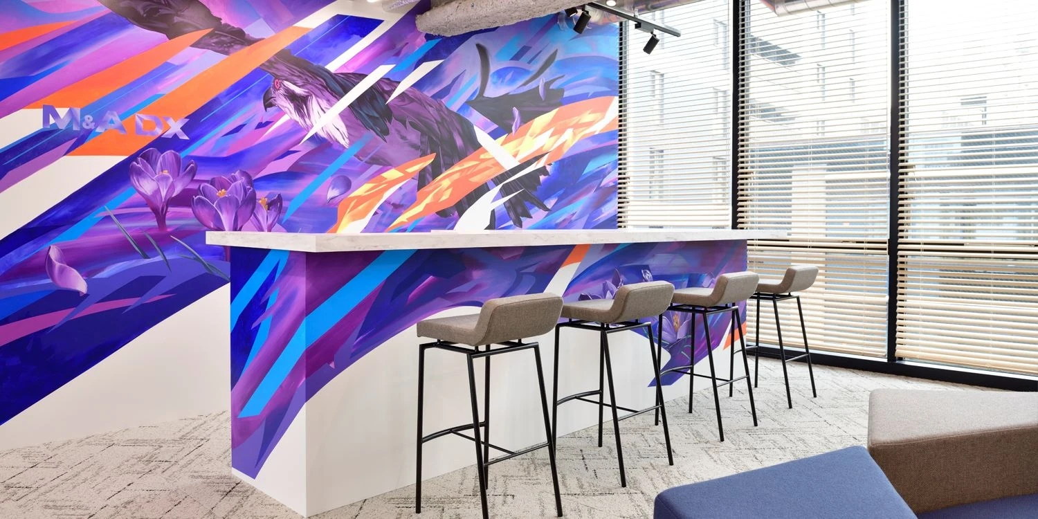 ヴィスが運営する『The Place』オフィスフロアへのご入居。2018年1月に創業、2021年7月に社名変更及びコーポレートロゴを刷新したリブランディングの背景を紐解き、必要なオフィスの役割とは何かを追求しました。オフィスに求められることが単純に作業場としての機能ではなく、業務効率向上や企業文化の醸成、ロイヤルティの醸成など多様化していくフェーズのターニングポイントでもあることから、コンセプトはより強い組織づくりを醸成する“きっかけ”を提供する『Culture Place』と策定。リアルのタッチポイントであるオフィスをより体験価値の高い場所へ導くため、ウォールアートが引き立つ空間設計にしました。各ステークホルダーとの関わり合いの中で、会話のきっかけづくりを通し、多様な働き方、多様な属性に配慮しつつ企業のあり方を表現する空間を目指しています。「場所」の提供に留まらない、「文化・理念・価値観」の共有を体現するプライベートオフィスが完成しました。