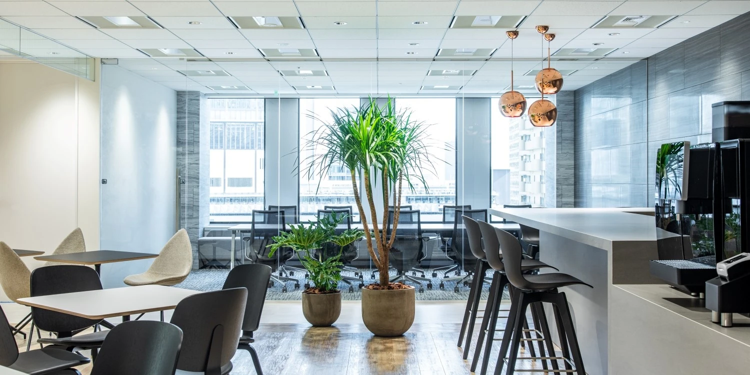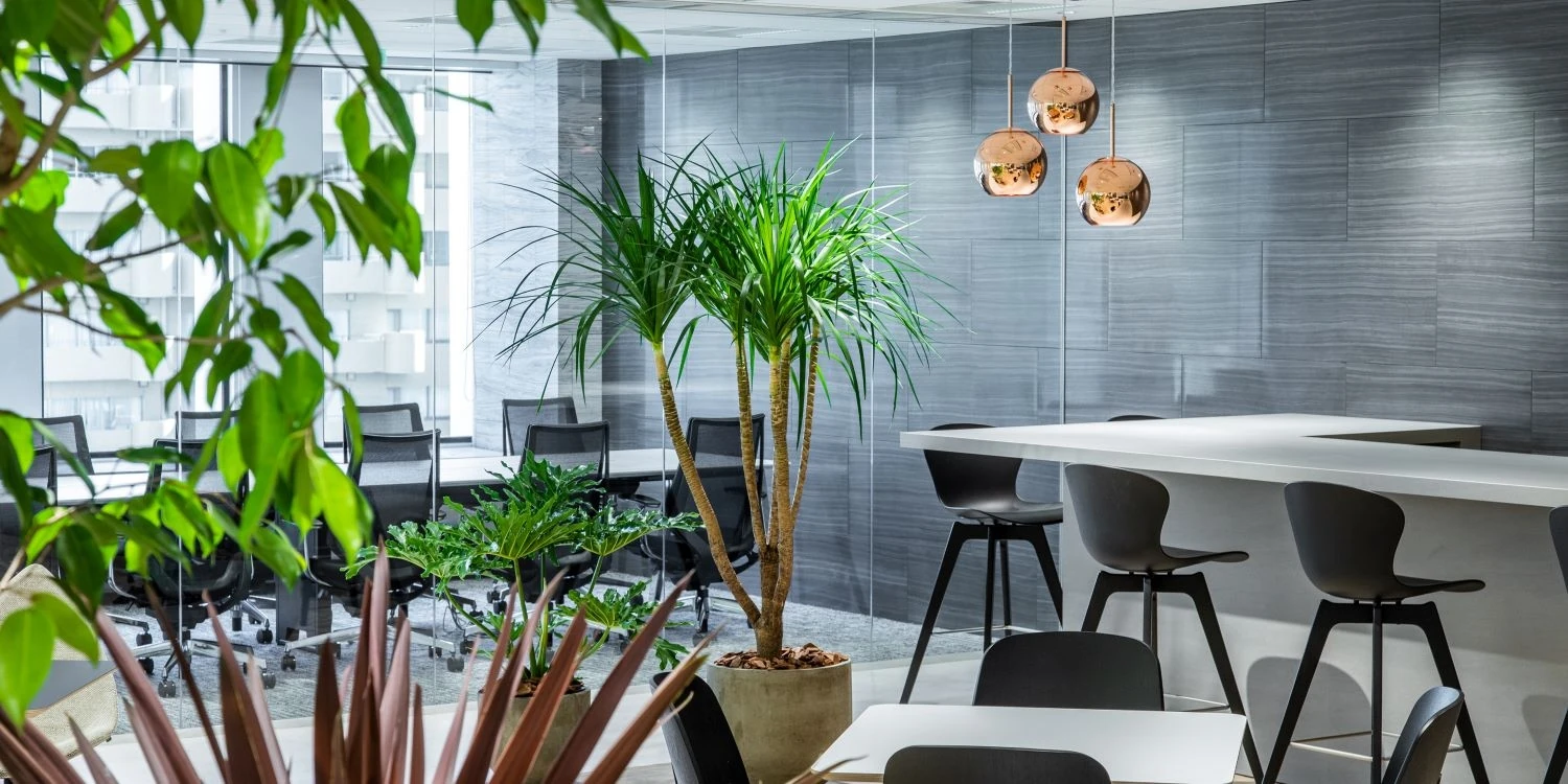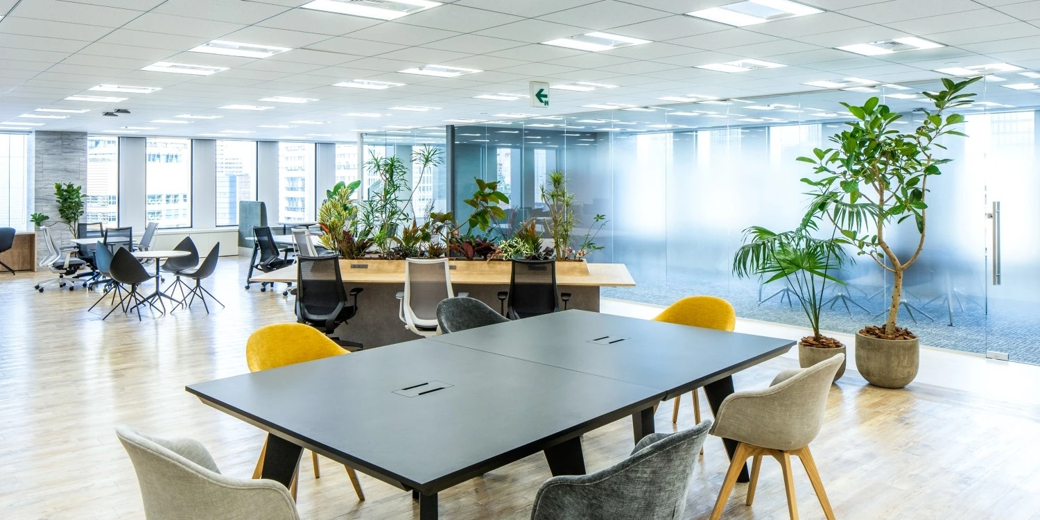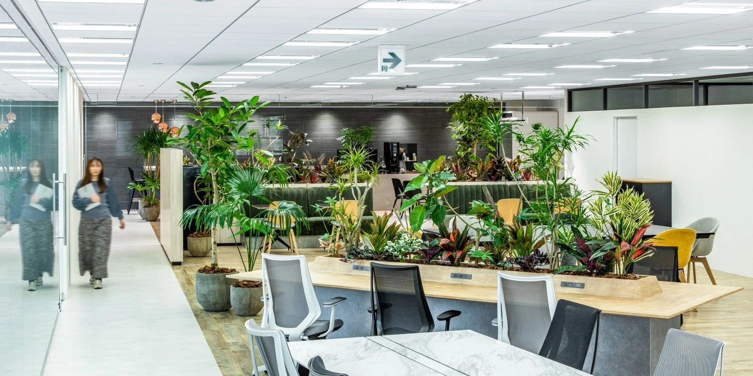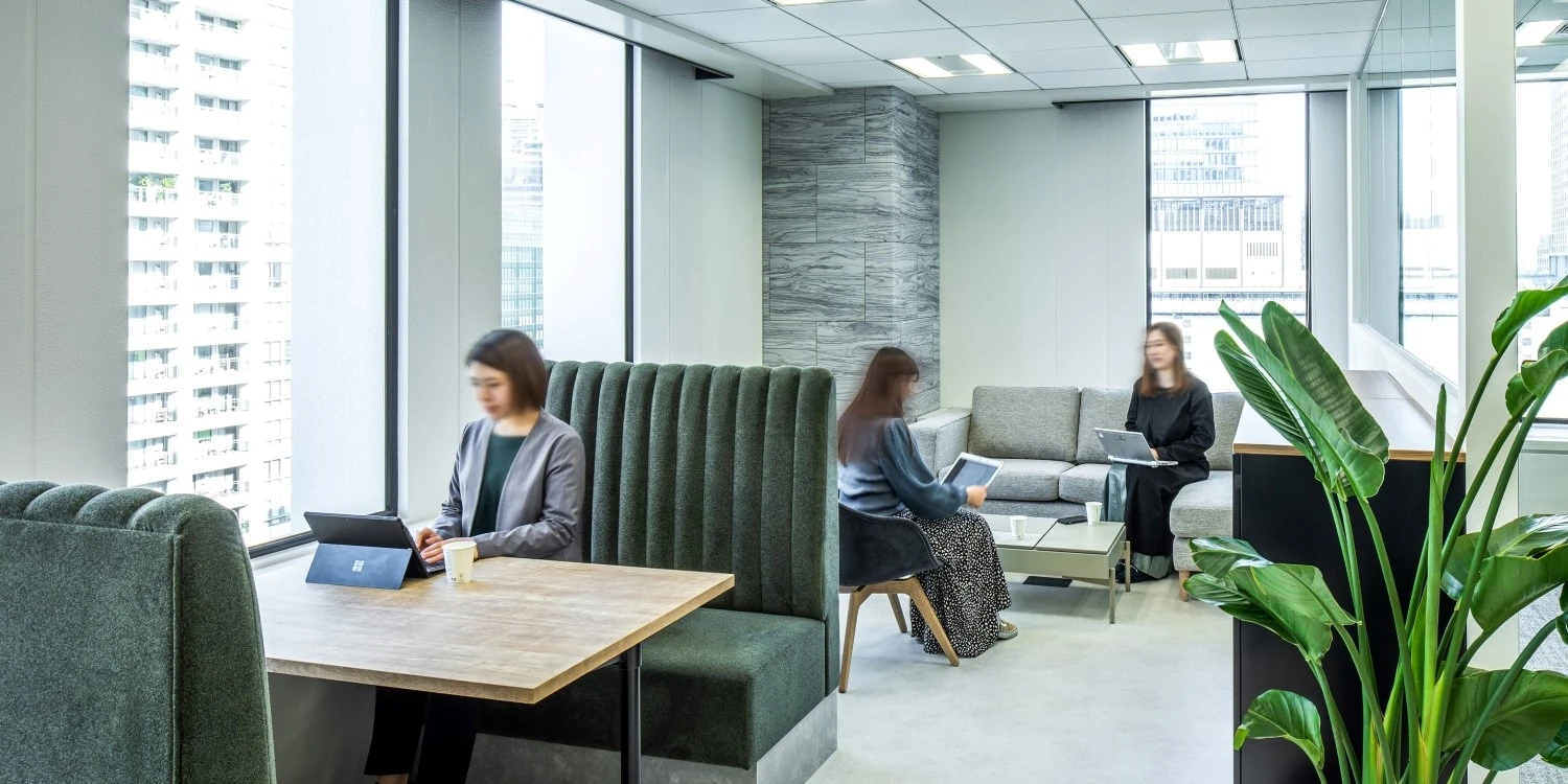 開放感と清潔感・アクセントグリーンが印象的なデザイナーズオフィス