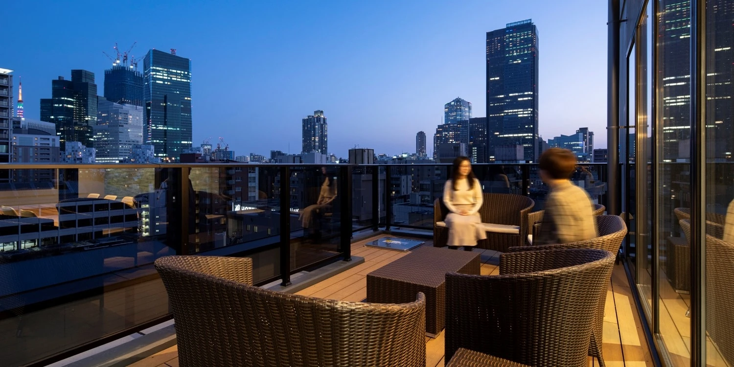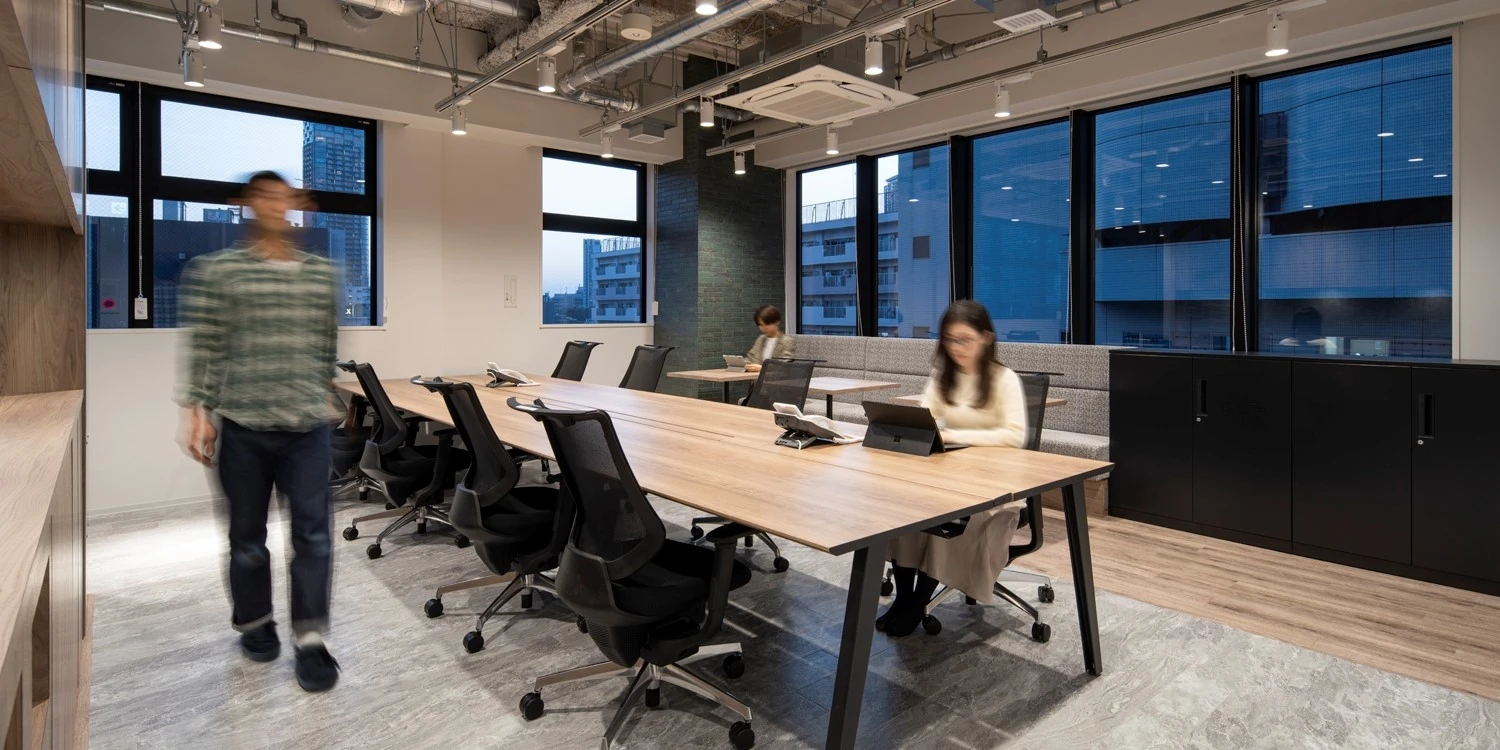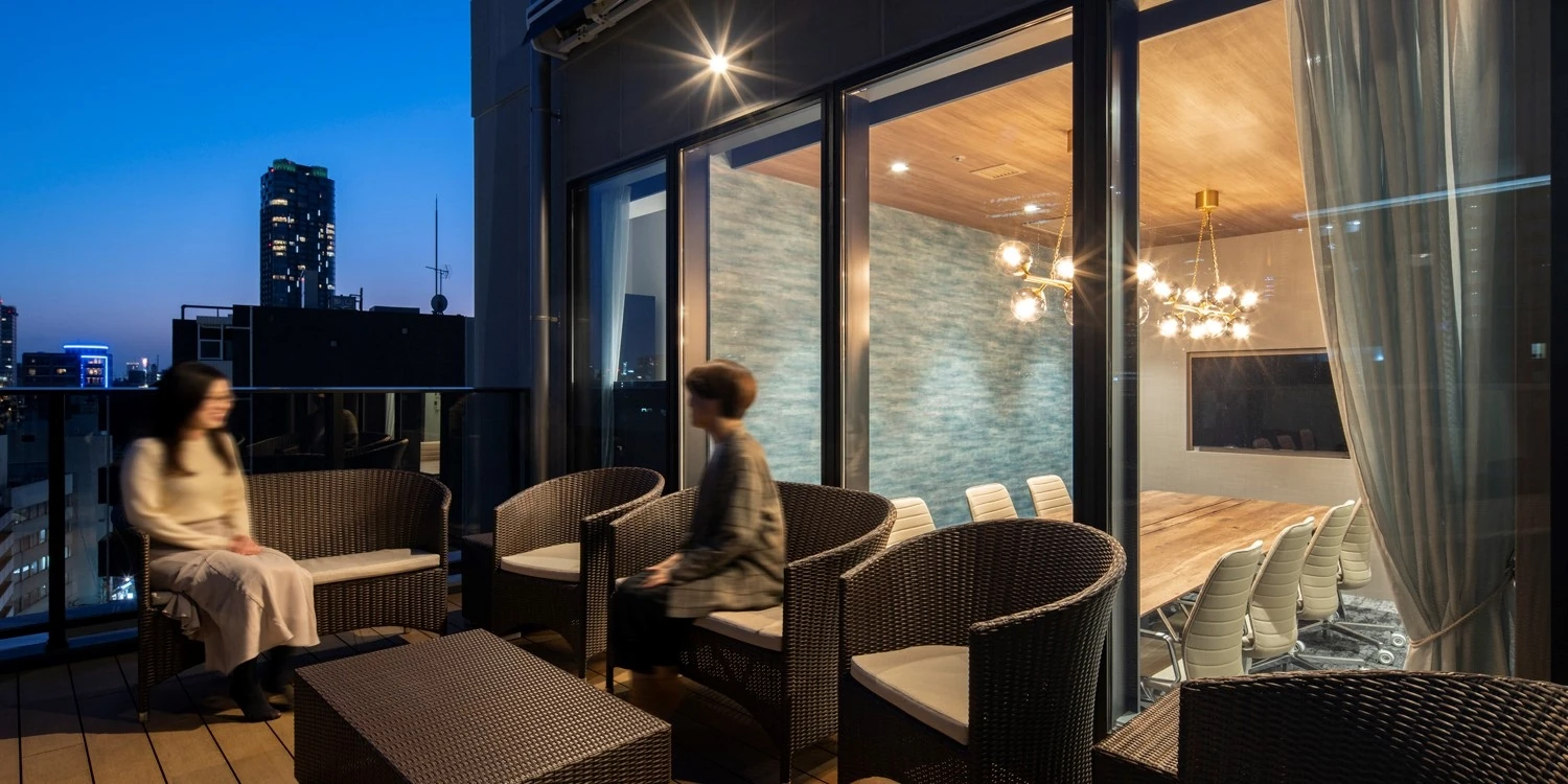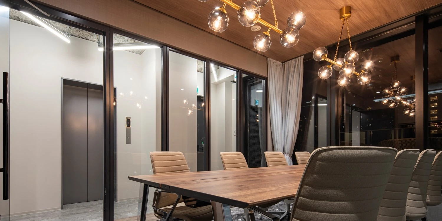 新しい自社ビル「ARAプレイス赤坂」10階自社オフィスのデザインをお手伝いしました。「ARAプレイス赤坂」特有のモダンな雰囲気、ビルの外観にイメージを合わせ、一体感が出せるデザインとしました。エントランス前の会議室はガラス張りで抜け感があり、室内のペンダントライトやクロス材で印象的な雰囲気に仕上げています。会議室隣のバルコニーもラグジュアリーな雰囲気とし、カーテンを開けると10階からの景観を堪能することができます。執務室内も床材や木の素材を統一し、全体的にシックな雰囲気にまとめ、信頼感が感じられるデザインとしました。