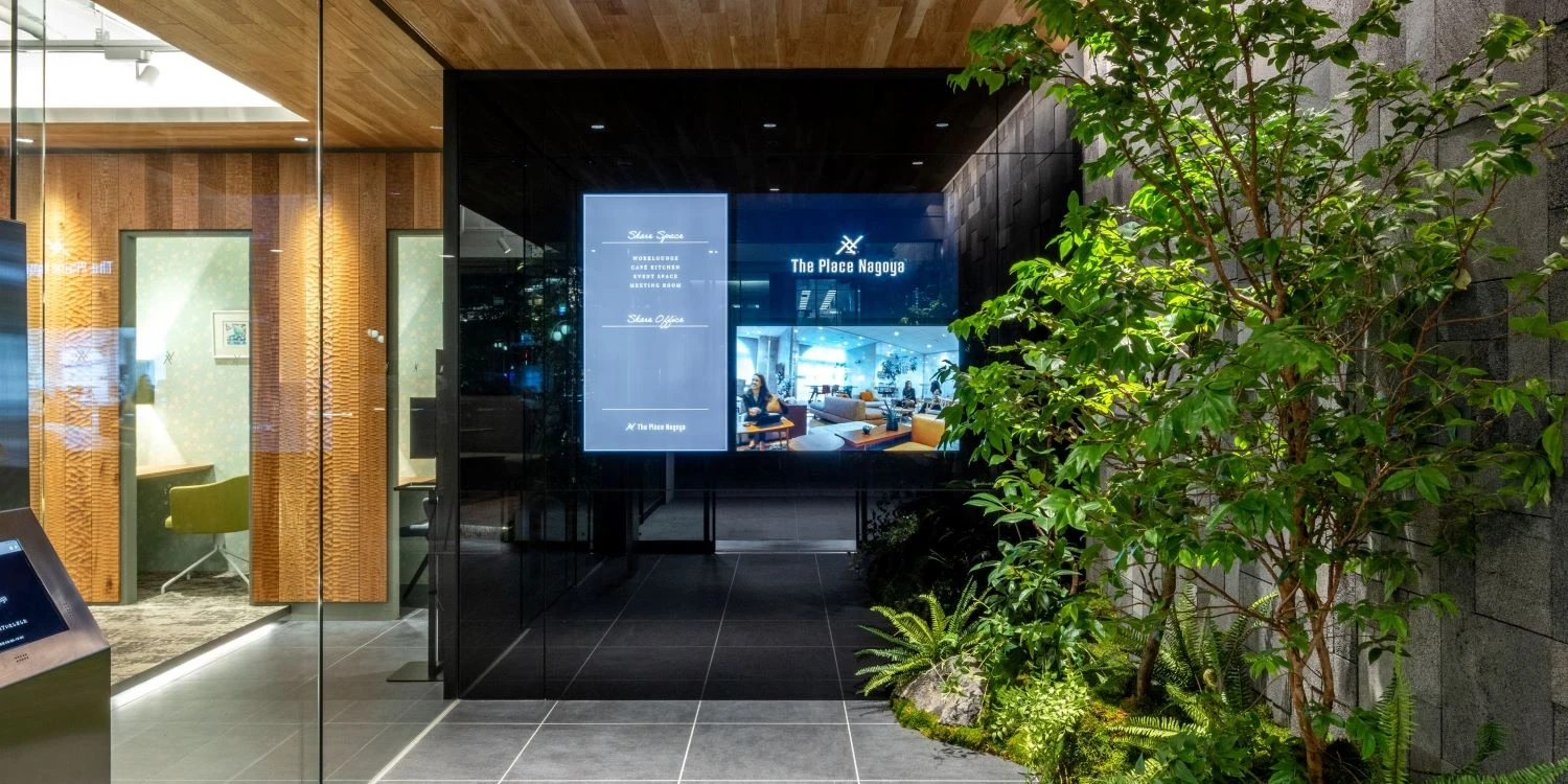 「The Place 名古屋」では、ヴィス名古屋オフィス、他企業に入居いただけるシェアオフィスを3部屋、共用のワークラウンジを設置しました。共用ワークラウンジは「個人のパフォーマンスを高める」ことにフォーカス。錦通りの変わりゆく景色をガラス越しに感じながら開放的な雰囲気で仕事をできるベンチシートやソファ、音と視線を遮って自分自身に没入できる集中ブース、オンライン会議用のフォンブースと、リラックスと集中のバランスにバリエーションを持たせた空間設計をしています。大型LEDモニターも設置しており、イベント開催も可能です。ヴィス名古屋オフィスの入居する区画は、「チームでのパフォーマンスを高める」ことにフォーカス。ミーティングエリアの多くはスタンディングで打ち合わせできるようにし、スピーディな会議進行と自由闊達な意見交換を促進させる設計をしています。自ら働く場所を選ぶことができ、パフォーマンスを最大化するワークプレイスです。
