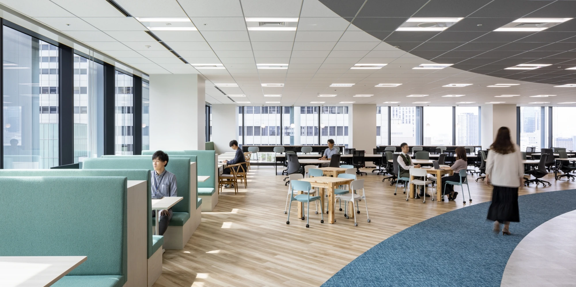 H2Oリテイリング・阪急阪神百貨店 グループ2社の大阪梅田ツインタワーズ・サウスへのオフィス移転をお手伝いしました。ご移転に際し、働き方の変革も含めたコンサルティングを行いました。オフィスのデータ取得、社員アンケート実施、経営者へのインタビュー、現地ワークからの実態把握、ワークショップの実施を通して最適なコンセプト、オフィスデザインを導きました。 -