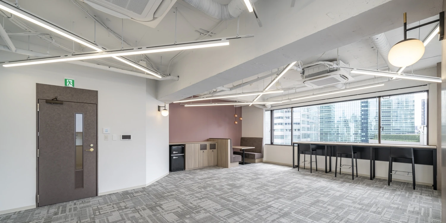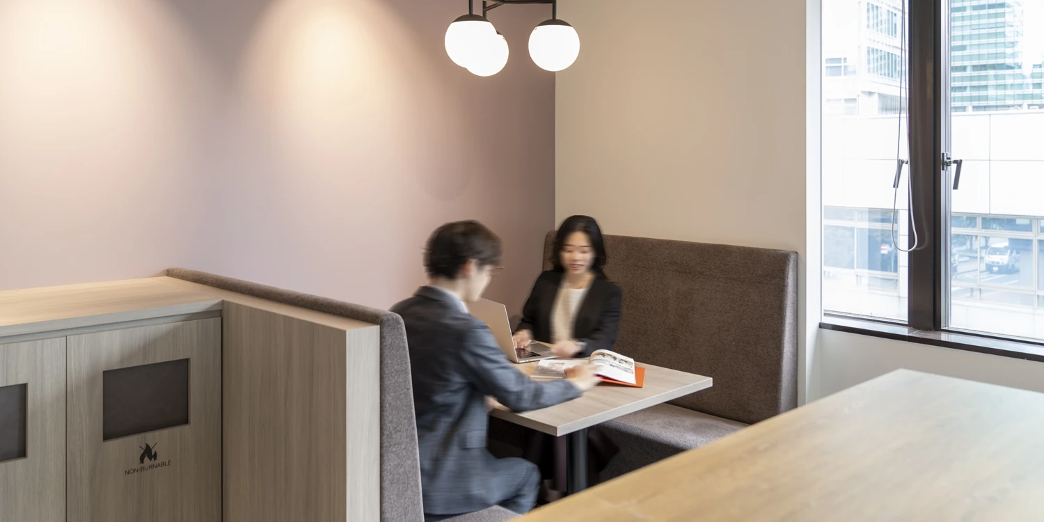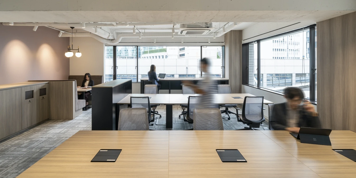 オフィスビル全体で統一感のあるデザイン。多様な働き方ができるセットアップオフィス