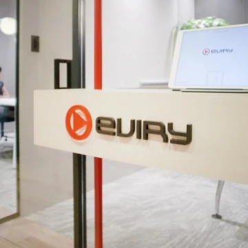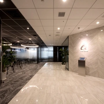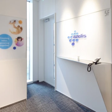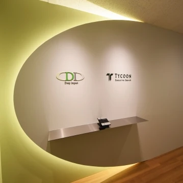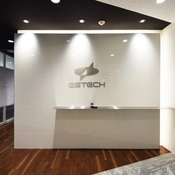 社名をエントランス全体で表現した、更なる飛躍に向けたオフィス