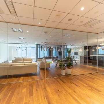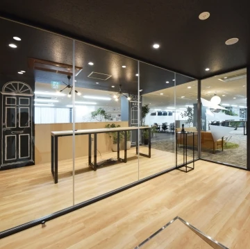 色彩豊かでガラスの抜け感と木のぬくもりを感じるアットホームオフィス