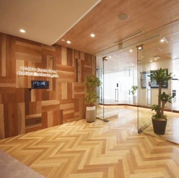 白の磁器タイルと木目のデザインで「シンプルに、スマートに」を体現できるオフィス