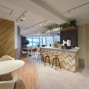出会いや何かのきっかけが生まれる街角のカフェをイメージしたオフィス