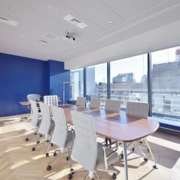 鮮やかなブルーが織りなす、自然を感じられるナチュラルオフィス