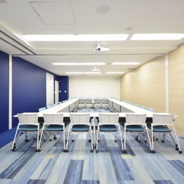 ブルーとホワイトのコンセプトカラーが彩る流れるようなアールデザインオフィス