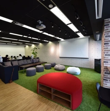 コーポレートカラーを取り入れた、多目的コミュニケーションスペース