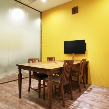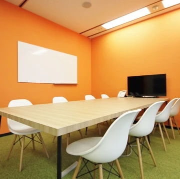 コーポレートカラーを取り入れた、多目的コミュニケーションスペース