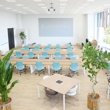 ジオメトリックデザインが散りばめられたデザイナーズオフィス