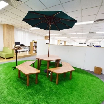 開放感と遊び心を感じさせるクリエイティブな新しい楽園オフィス