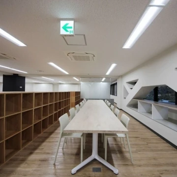 コーポレートカラーを取り入れた、多目的コミュニケーションスペース