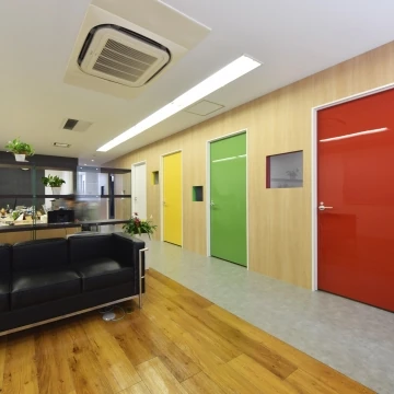 カラーでインパクト、ガラスで開放感を。人と社会を繋ぐオフィス
