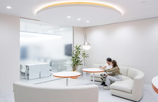 曲線のデザインが柔らかさとフレンドリーさを感じさせるオフィス