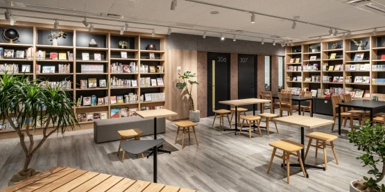 印象的な本棚を構えた、上質なワークプレイス