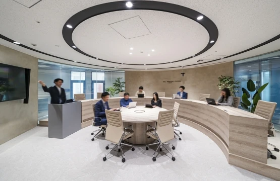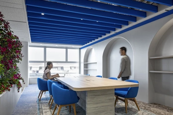 曲線のデザインが柔らかさとフレンドリーさを感じさせるオフィス