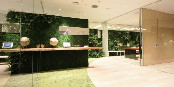 シンボリックなグリーンウォールに癒されるオーガニックオフィス
