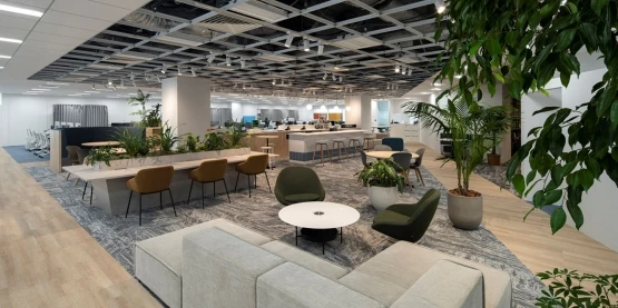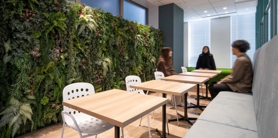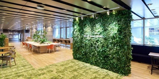家のような居心地の良さをデザイン。グリーンを多用した開放的なオフィス