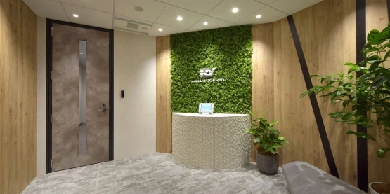自由に働き方を選択できる木とグリーンを基調としたオフィス