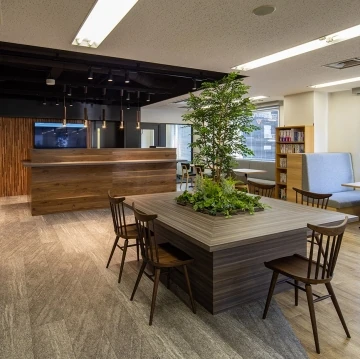 新社屋にこだわりのリフレッシュスペースをかまえたオフィス