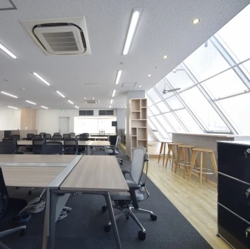 一面窓ガラスという開放感を活かした、明るく居心地の良いオフィス