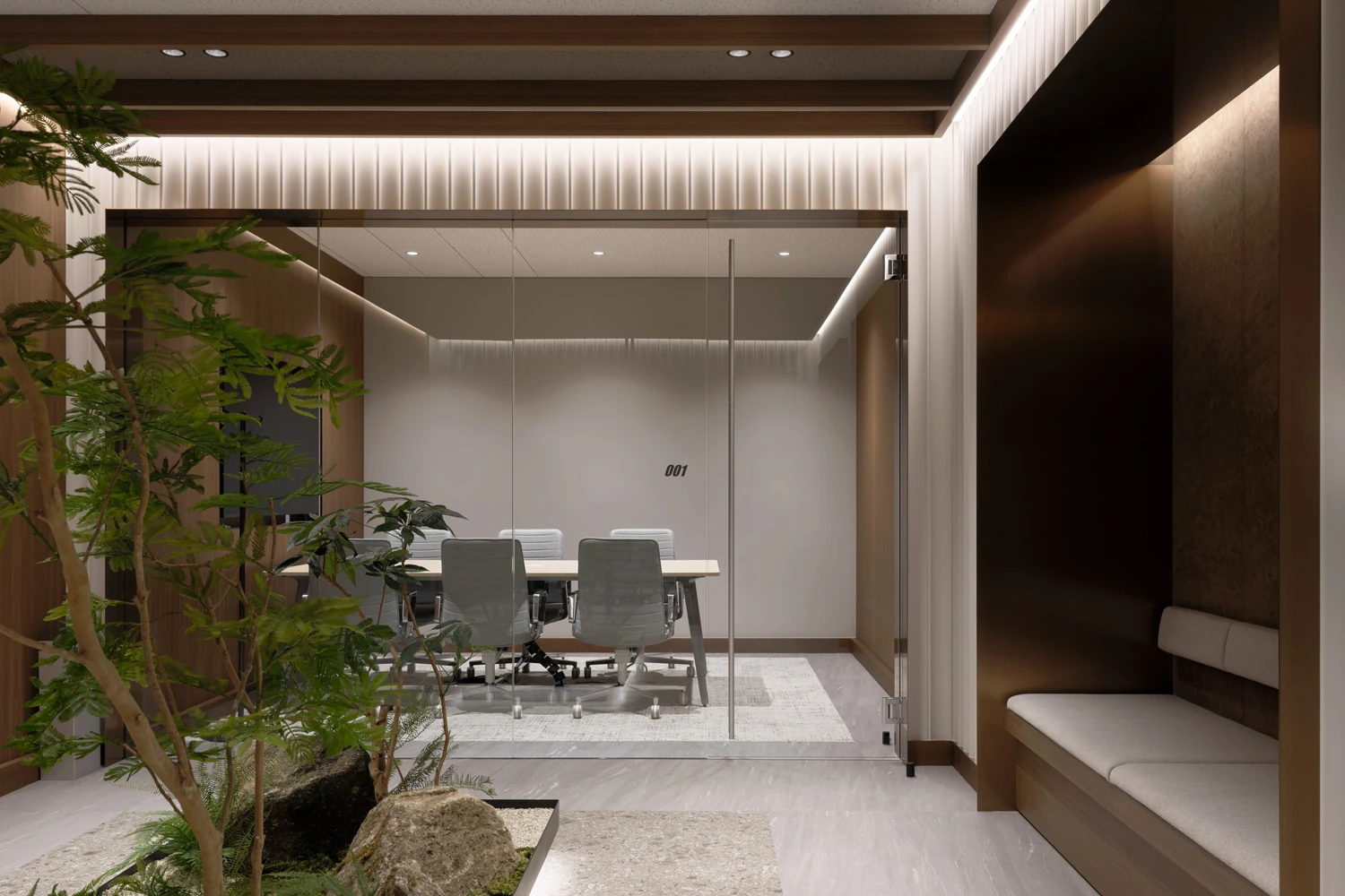 木とガラスの融合が美しいワークプレイス