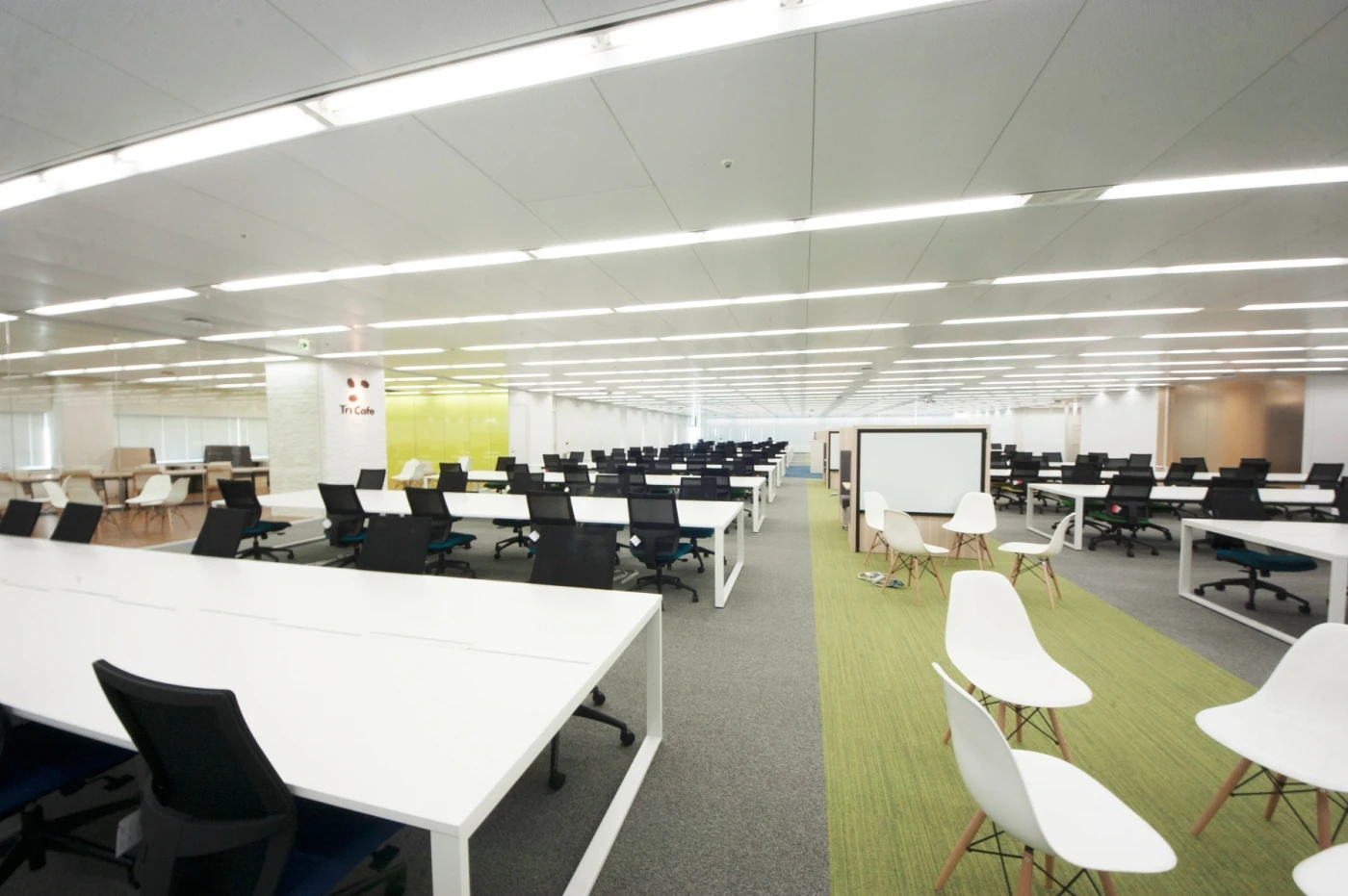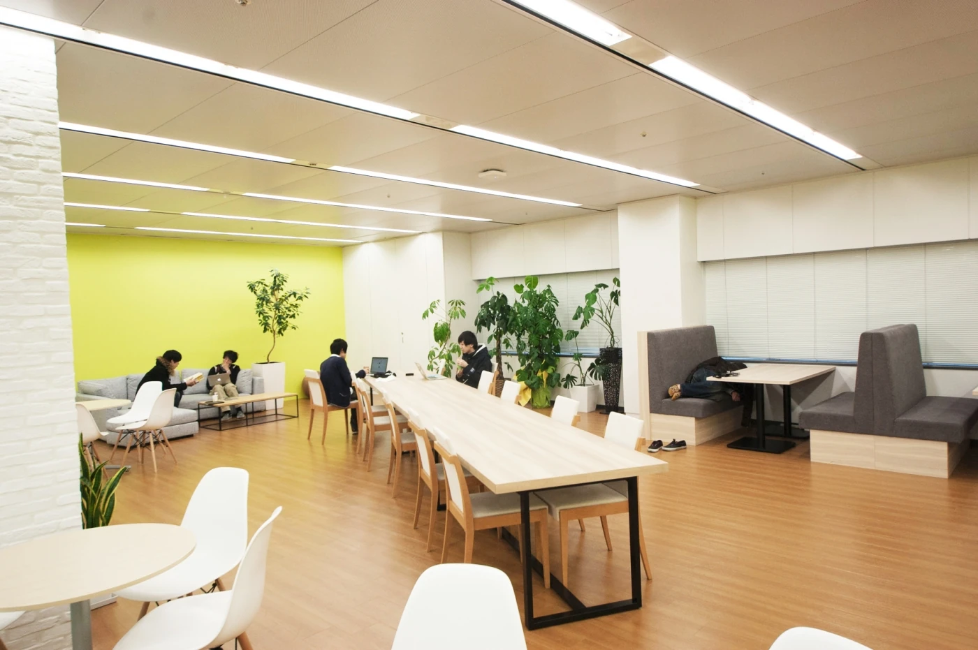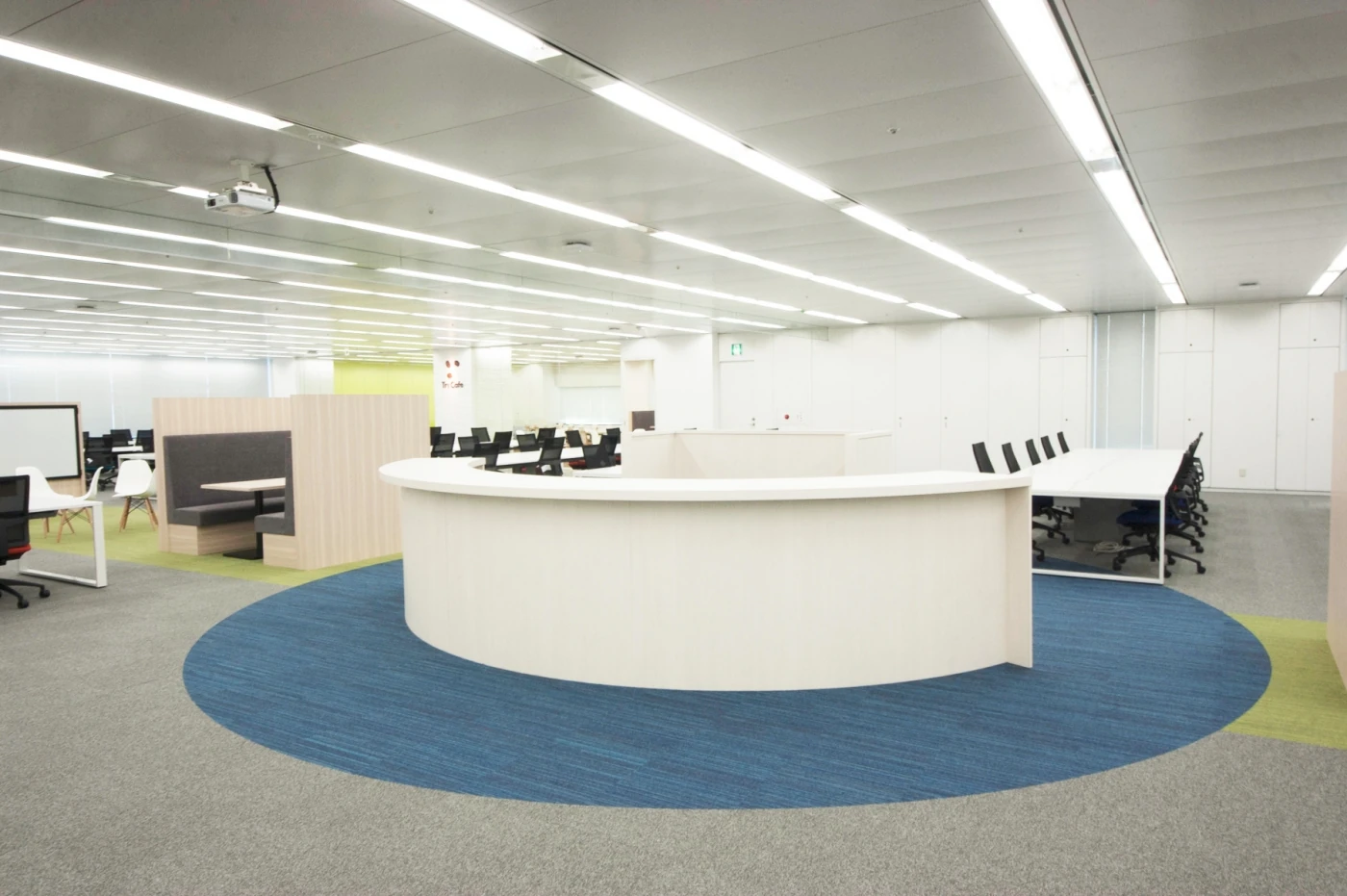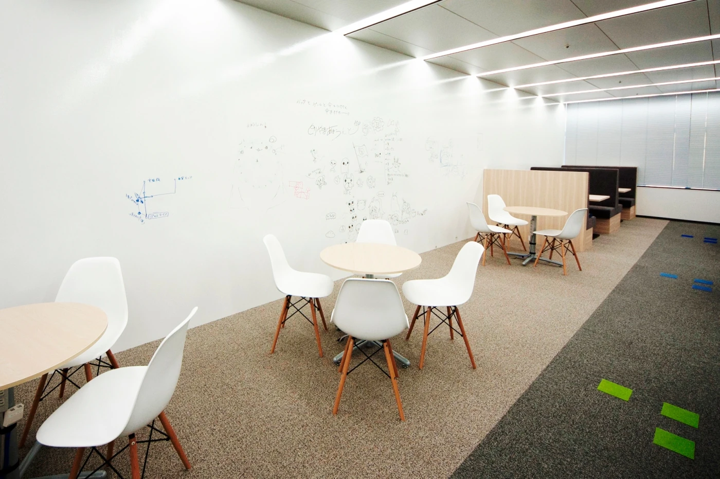優しい木目と白のブリックタイルのエントランス空間に際立つ、エイジング風に仕上げたロゴサイン。ビル規定として存在していたガラス壁をデザインの主役にすることで、透明感のあるエントランスに仕上がりました。ワークスペースでは、社内MTG席、ホワイトボード壁を多数設けることで、スタッフ同士のコミュニケーションが活発になる手助けをしてくれます。両面ホワイトボード付きソファベンチはオリジナルで作成しました。ワークスペースの中心に設けたRカウンターは空間の主役でもあり、立ちMTGや収納機能としての役割もしています。「デザインと機能性」を兼ね備えたオフィスができました。