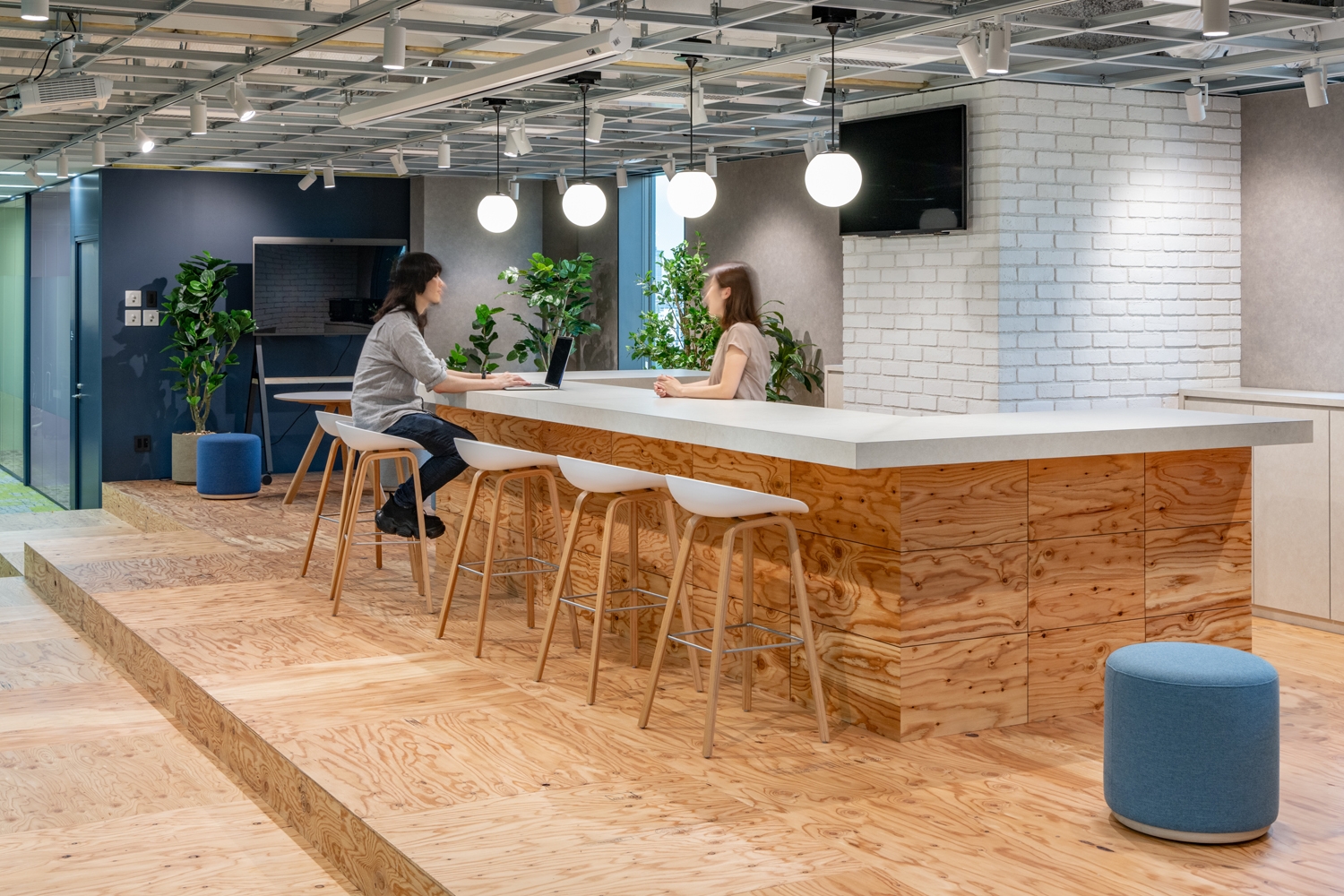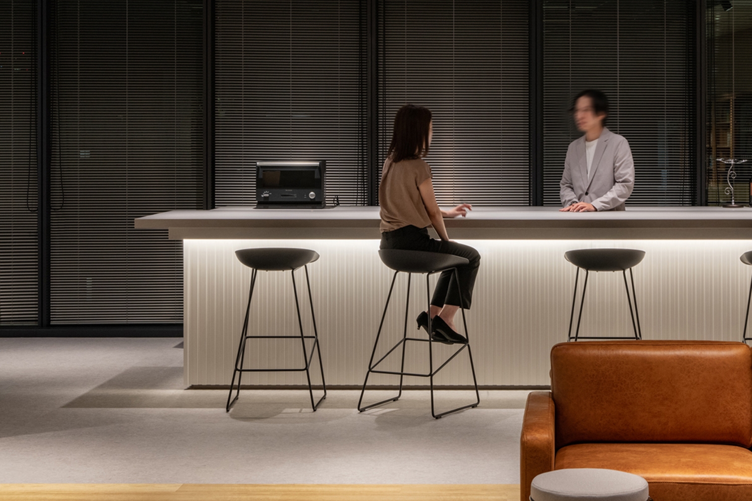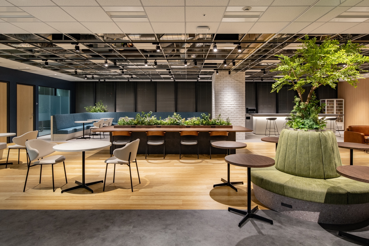 事業拡大・人員増加に伴うオフィス移転。コンセプトは、事業を通して世界の可能性を広げる想いを込め『Break the WALL』とし、エントランスデザインで表現しています。岩面を打ち砕いたようなデザインは、施工中にお客様と実物を確認しながら砕き具合を決め、今回のオフィスの象徴となりました。ワークスペースは固定席のデスクとともにリフレッシュスペースを充実させ、オンオフのメリハリをつけてはたらくことができます。上昇志向と経営理念への想いが強いアイドマ・ホールディングス様を体現するオフィスが完成しました。