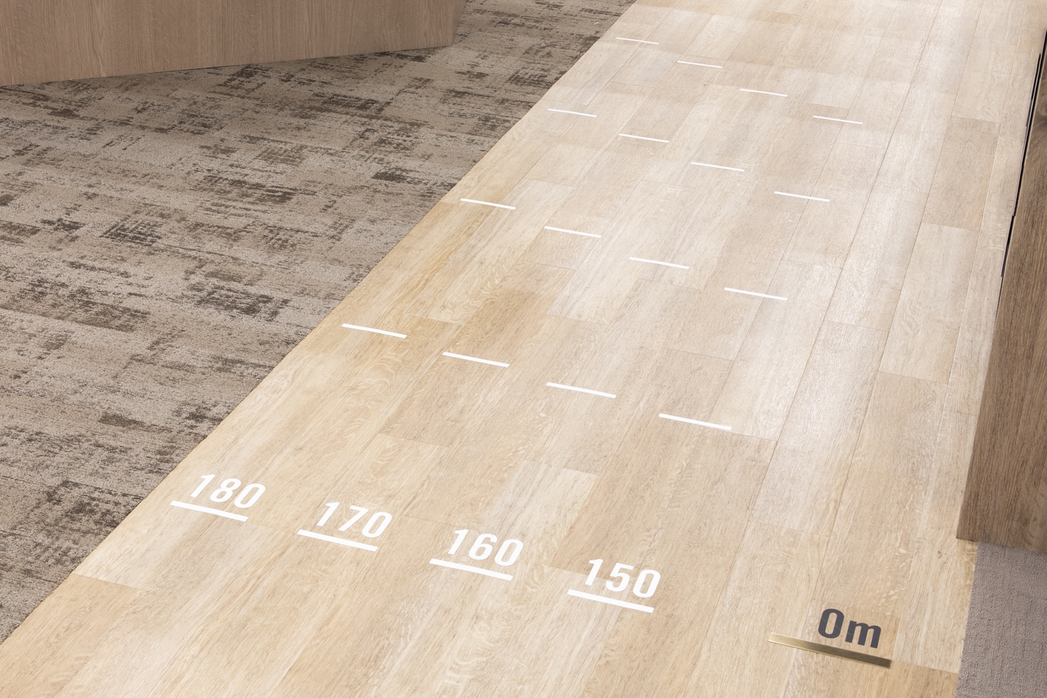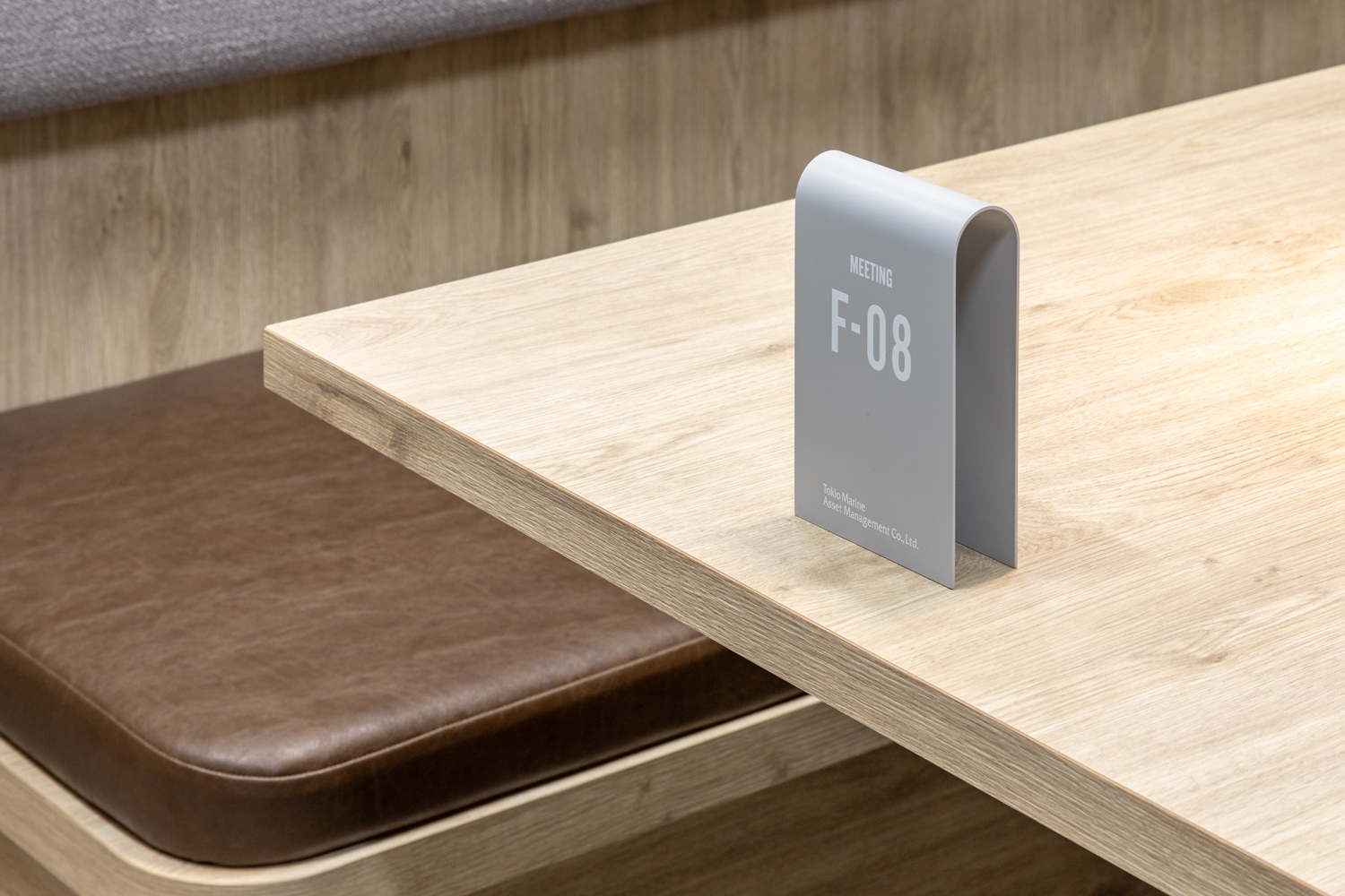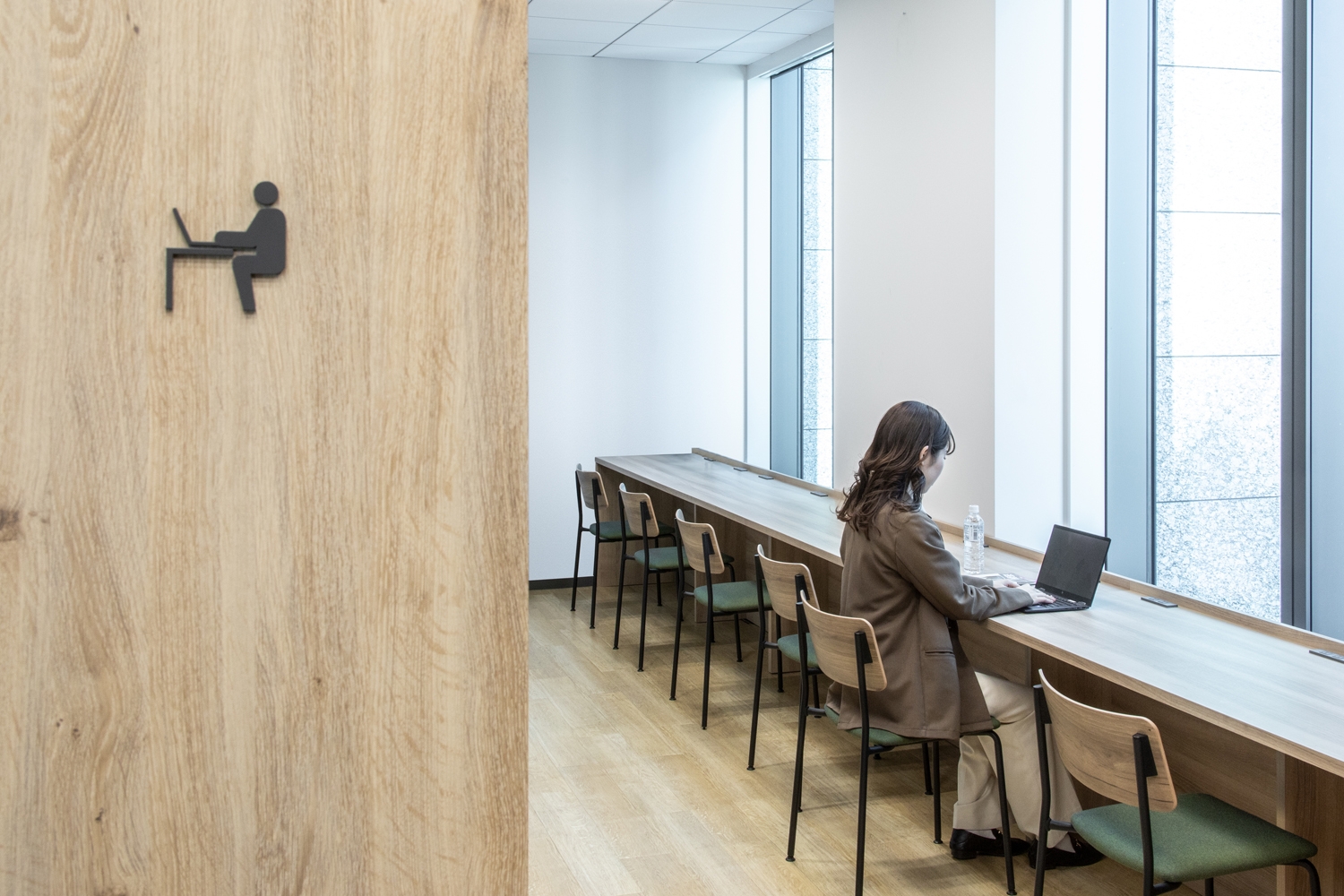 『SYNERGY PLACE』のコンセプトの下、「Flexible」「Openness」「Choice」「Connecting」の4つのキーワードを基に、社員が自分のはたらく環境を主体的に選択し、さまざまな人とつながれるオープンな場所を増やすことを目指しました。ビルコア側にメイン動線を設け、その動線沿いに打合せやコミュニケーションが取れるゾーンを設置し、どのベースワークゾーンからでもアクセスしやすい環境をつくりました。また、新社屋建設のために解体された東京海上日動ビルディング本館をイメージした煉瓦をエントランスに使用し、海の青を連想させる会議室を設けるなど、デザインにも工夫を凝らしました。この結果、気軽にコミュニケーションができる場所が増え、一体感醸成や業務効率化に繋がり、来客からも素敵なオフィスと評判を得ることができました。さらに、SDGsや健康経営の観点から、国産木材を使用したVIS PRODUCTのミーティングテーブルを取り入れ、歩行距離を可視化する工夫を取り入れるなど、持続可能な働き方を推進しました。