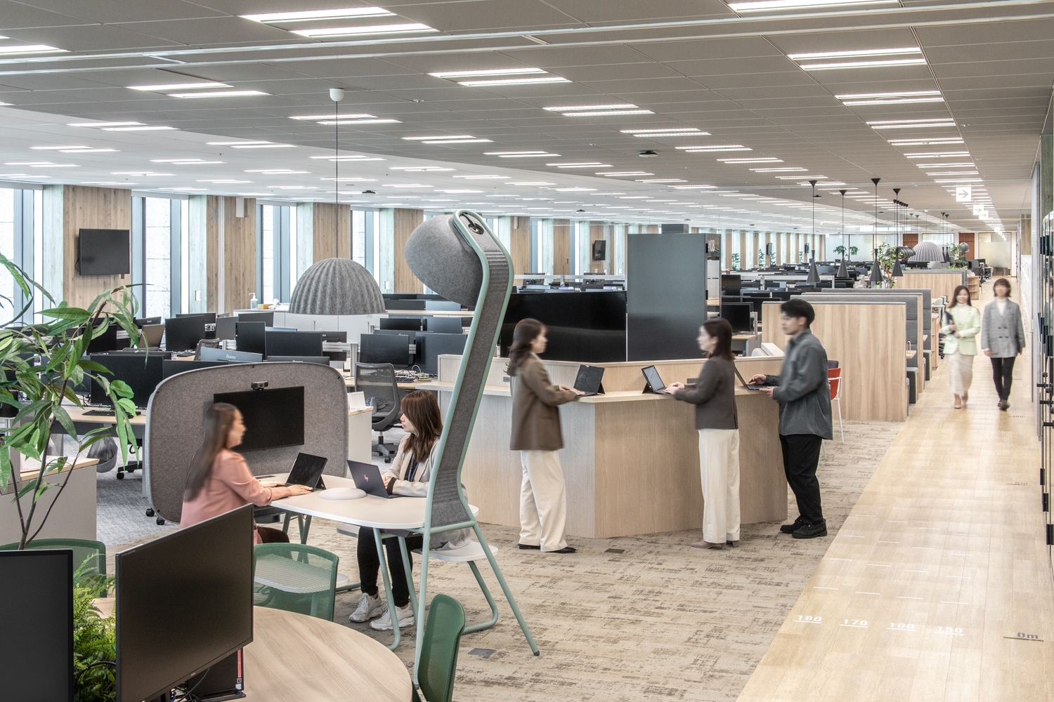 コミュニケーションの活性化、生産性の向上、そしてモチベーションの向上を達成することを目的としたプロジェクト。個々の仕事に特化した環境が会社全体の成長やイノベーションを阻害していたため、全体的なワークプレイスの見直しが必要となりました。また、トライアルで改装したコミュニケーションエリアも目的に沿った利用が進まず、業務に集中する人が増えてしまい、コミュニケーションが生まれづらい環境になってしまったという課題もありました。