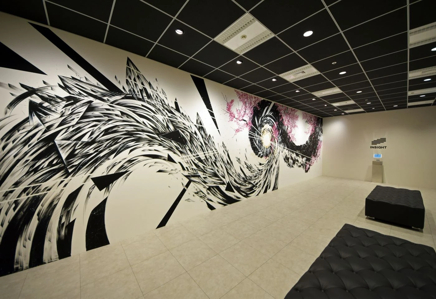 ワークプレイスのテーマの『COMBINE BASE』は、社員一人ひとりが主体的に動くことによってつくられる場所になるように設定しました。パントリーやリフレッシュエリアなどマグネットスペースとなるエリアを敢えて1か所に集約し、コミュニケーションを活性化させ一体感を醸成しています。ロゴマークから着想を得て全体のトンマナをモノクロで表現し、来訪者にインサイト様のブランディングを伝えています。