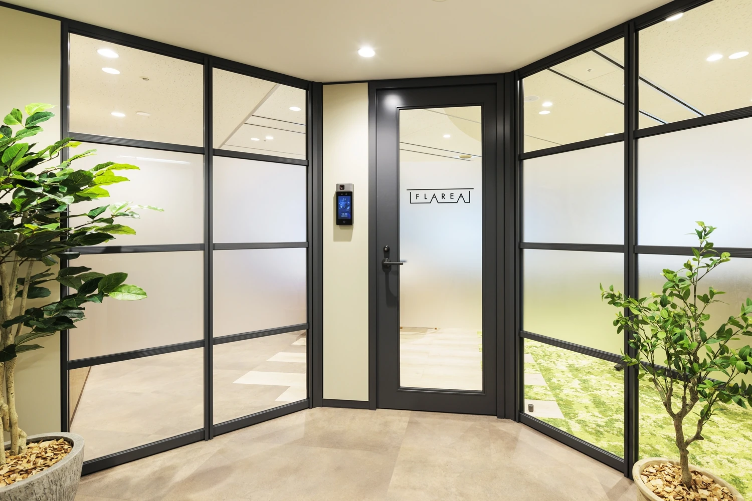 固定席スペースとそれ以外のスペースを適切に分け、ON/OFFの切り替えをしやすくしています。オフィス全体を壁ではなく高低差をつけた家具を中心に柔らかく区切り、空間全体をひとつながりにしました。デザインは、企業名になぞらえグリッドを意識した直線的なデザインでフレームを作り、植栽や光を交えて柔らかい印象を与えています。リモートワーク中心だったチームがプロジェクト後は自然に出社率が増加し、コミュニケーションが活発になりました。