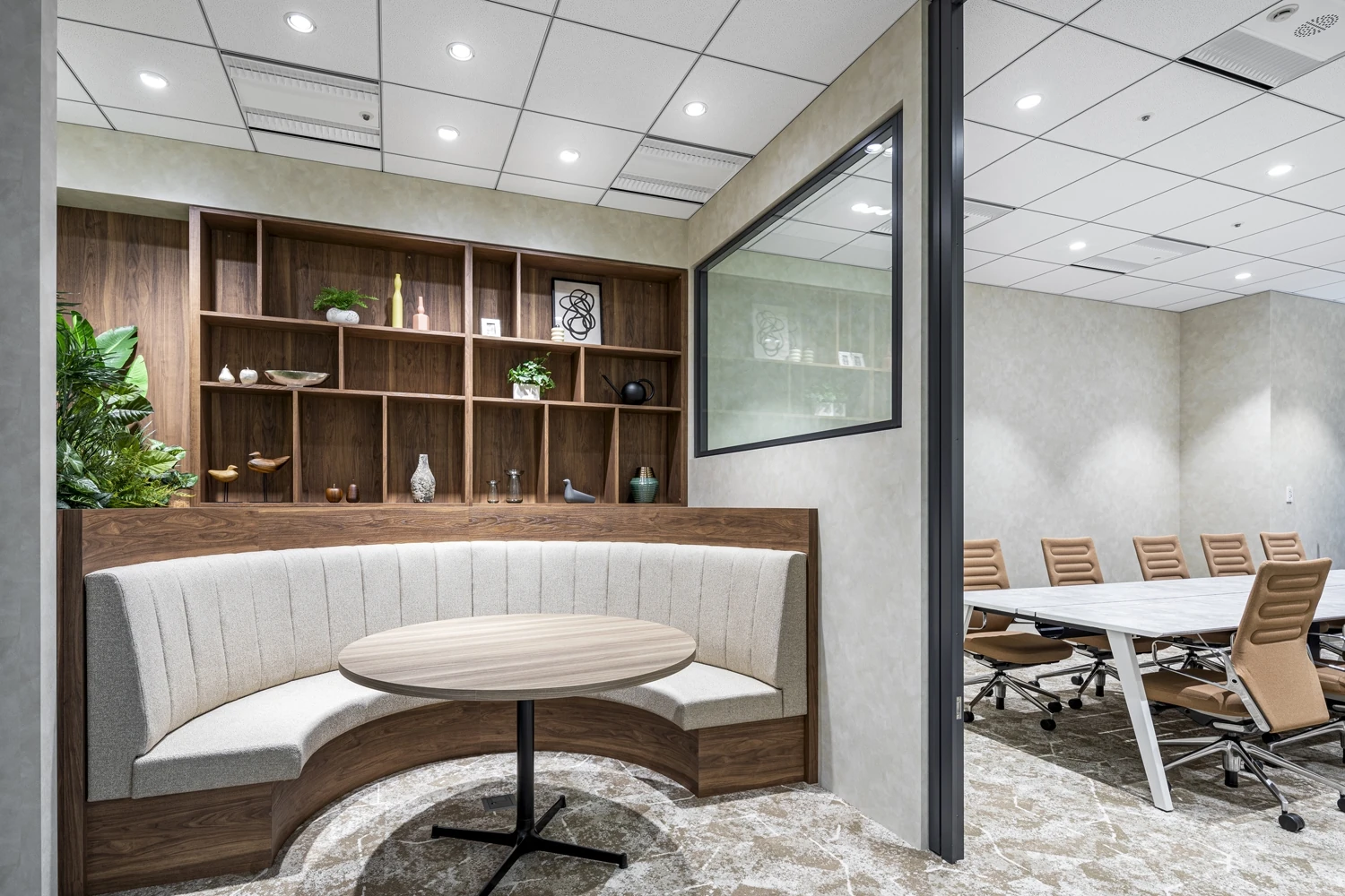 コンセプトは『NEW SALONE』。オフィスに来る→新しい出会いが生まれる→コミュニケーションの活性化につながると考え、社員はもちろんのこと、外部の来訪者に対しても、オフィス体験を高め来社を促すデザインと仕組みを取り入れました。全体的なデザインは、社内メンバーや来訪者は女性が多いことから、柔らかく温かみのある丸みをベースにしています。レイアウトは余白をあえてもたせ、ECサイト業務で必要な撮影スペースや将来的な増員のためのスペースとなっています。